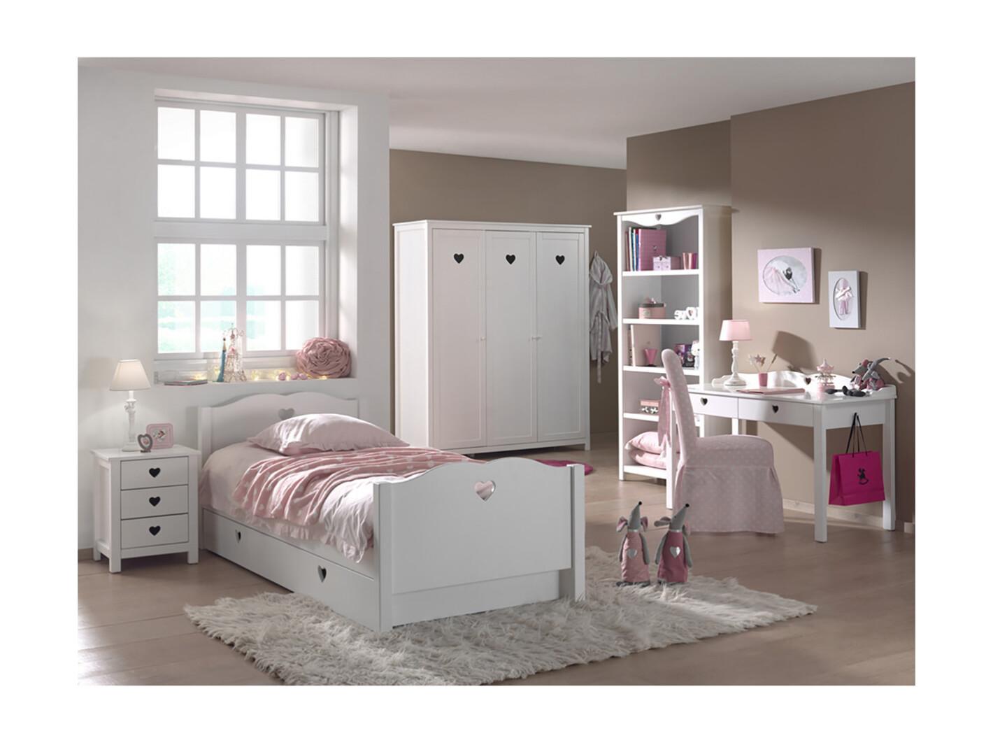 MILADY - Chambre 90x200cm + Chevet + Armoire 3P + Pack Bureau