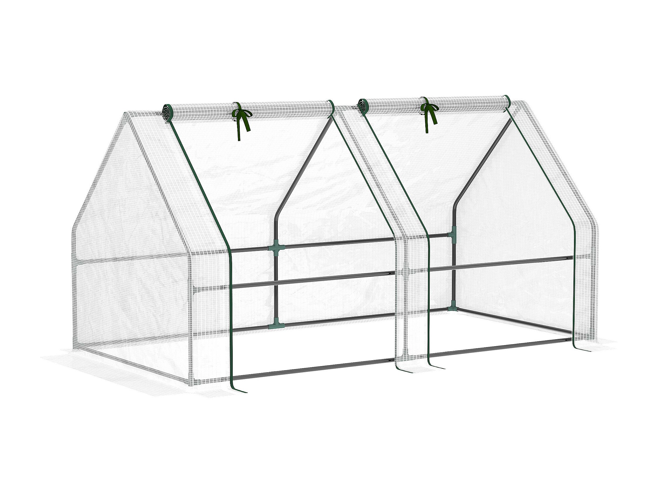 Serre de jardin 0,8 m² - 2 espaces, 2 portes enroulables - acier PE transparent