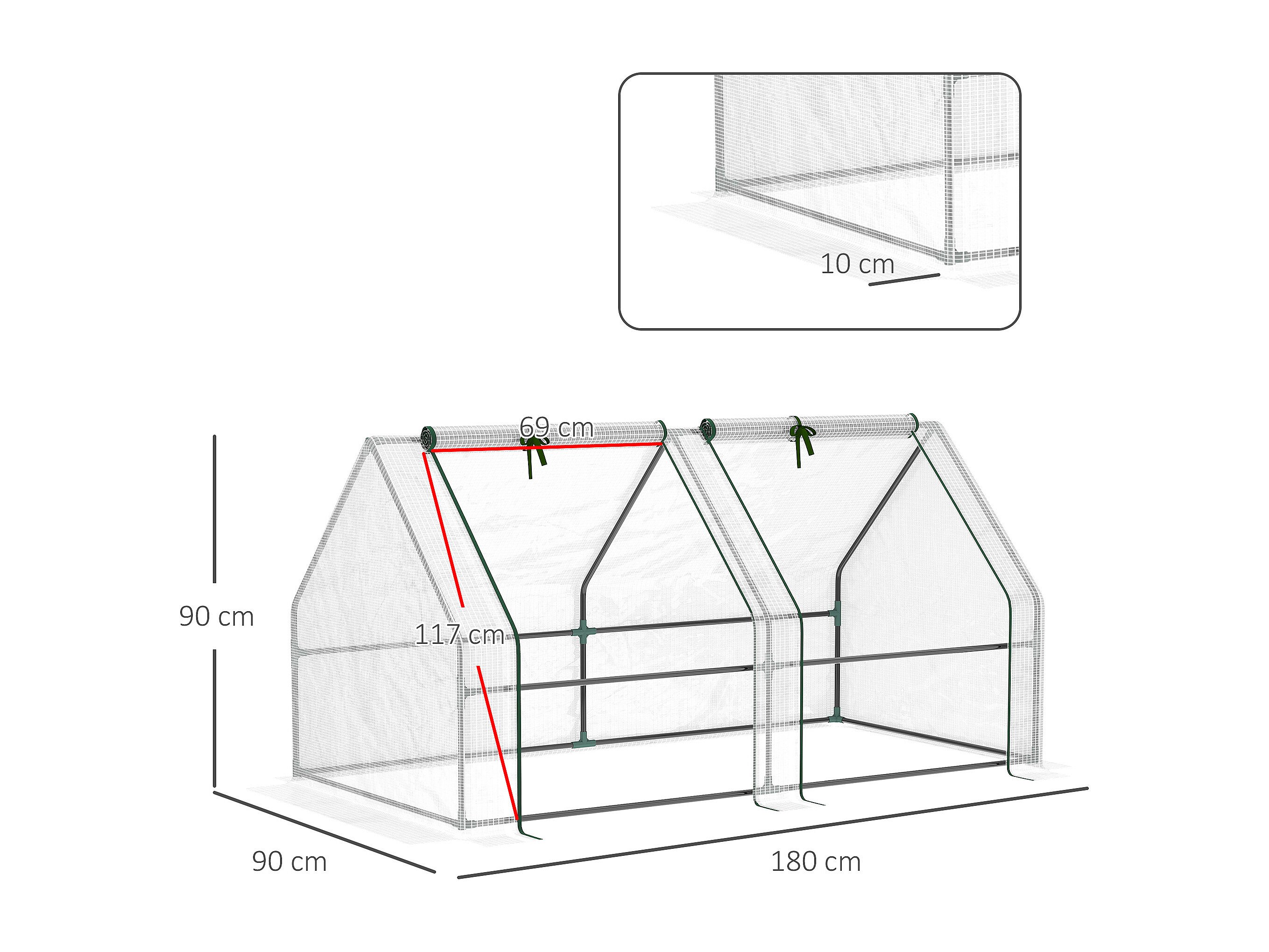 Mini serre de jardin serre à tomates 180L x 90l x 90H cm acier PE haute densité 140 g/m² anti-UV 2 fenêtres avec zip enroulables blanc