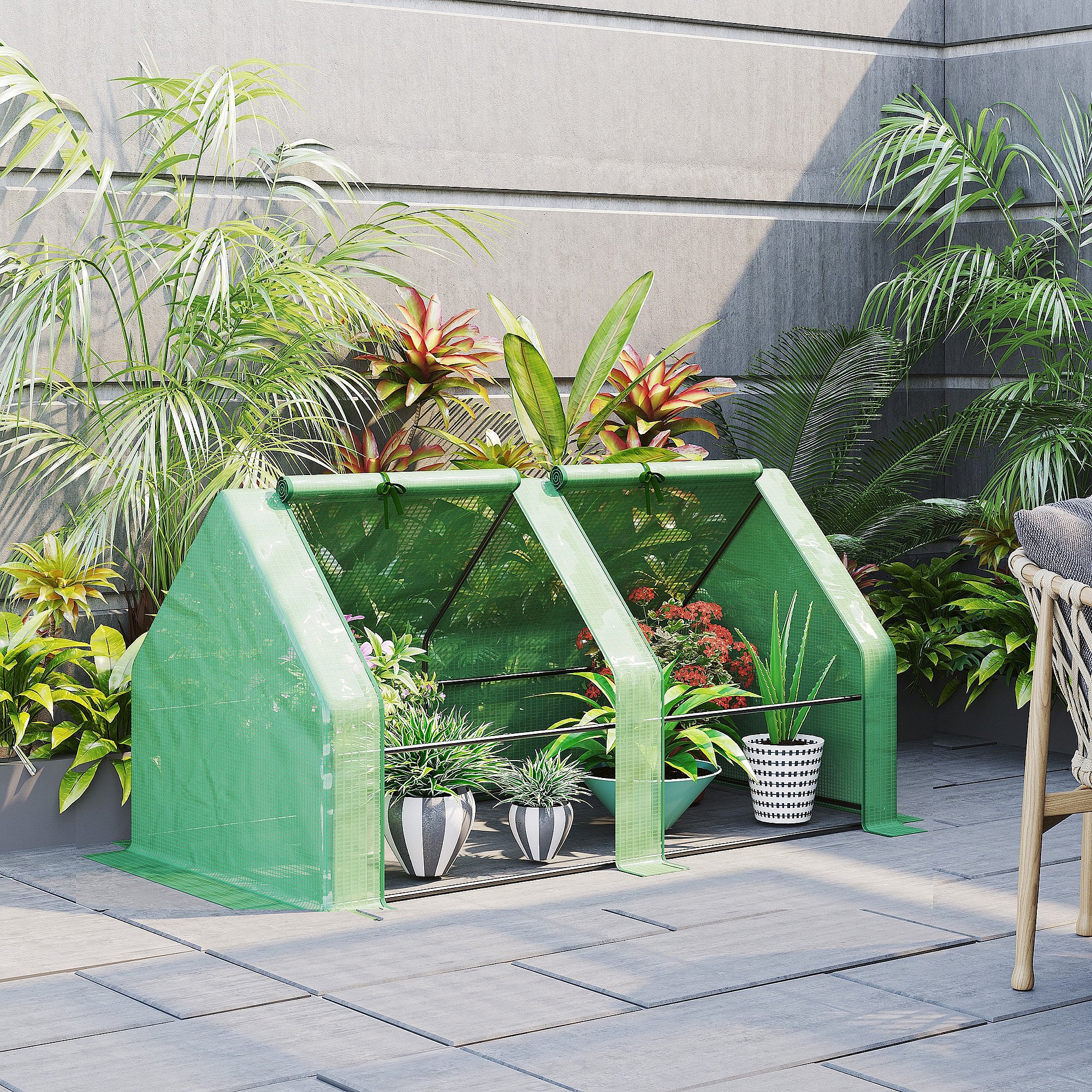Mini serre de jardin 270L x 90l x 90H cm acier PE haute densité 140 g/m² anti-UV 3 fenêtres avec zip enroulables vert
