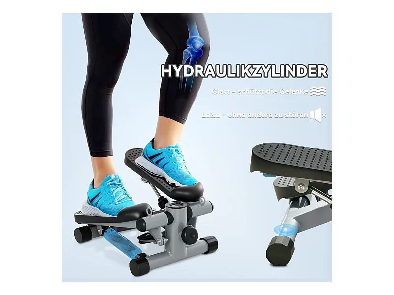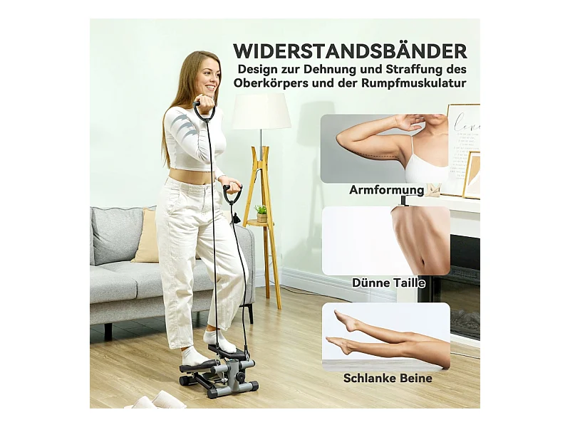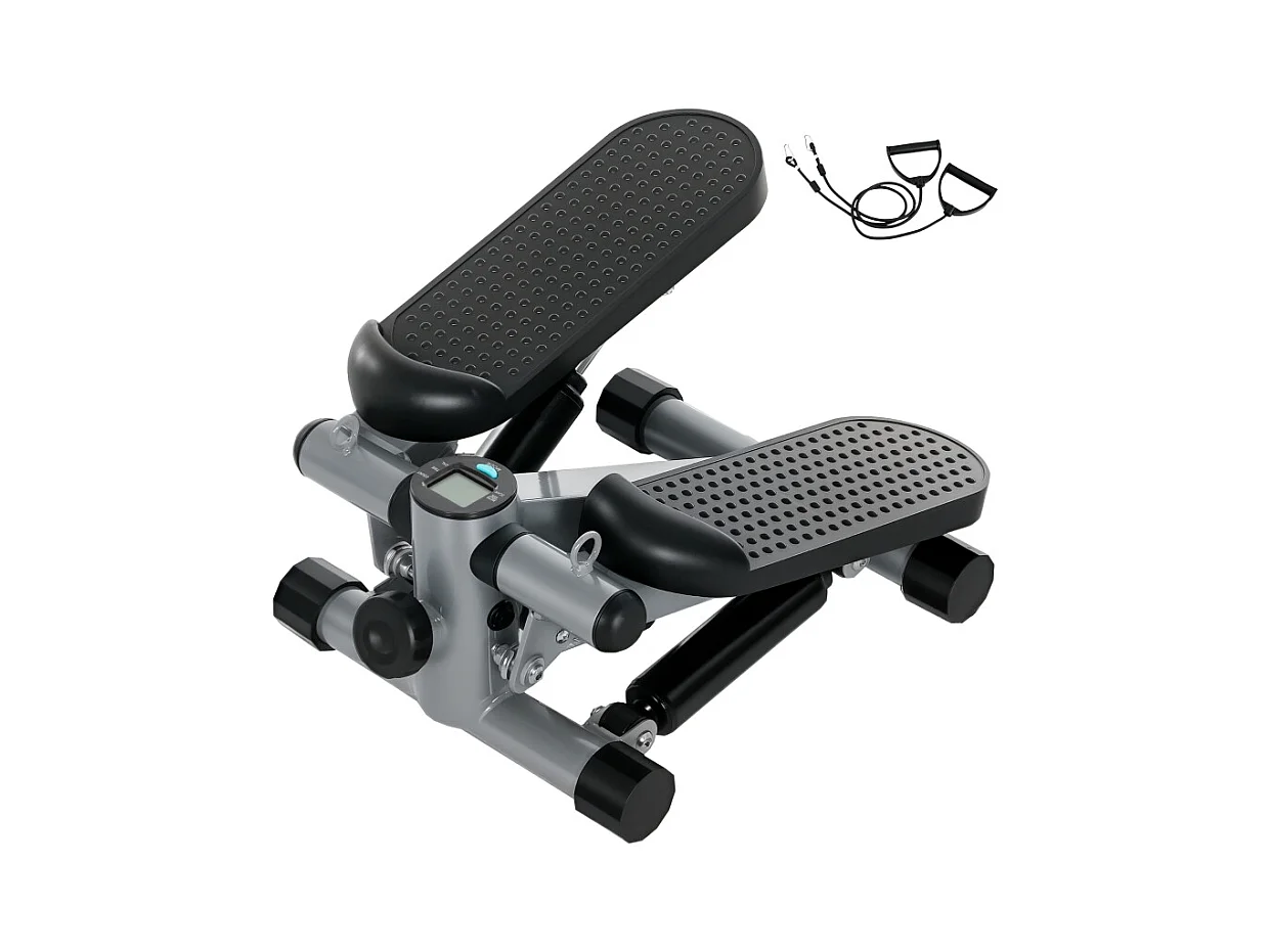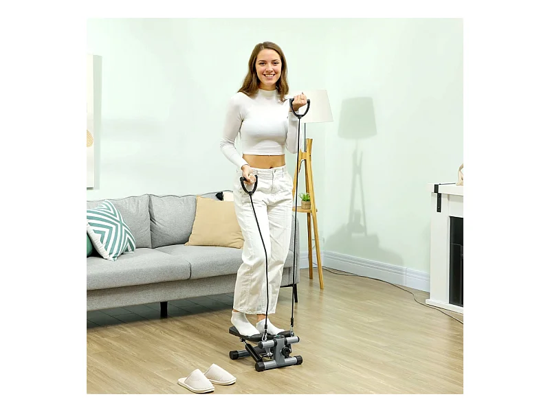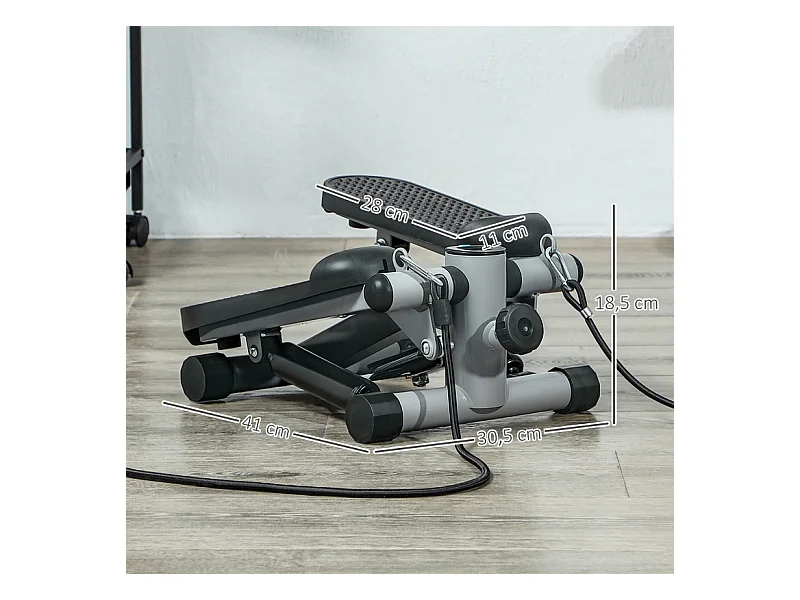 Mini-stepper 2 en 1 avec cordes de résistance, LCD et mouvement oscillant, plastique, gris (41x30.5x18.5 cm)