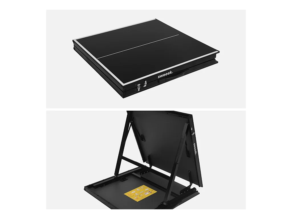 Mini table de ping pong 150x75cm - table pliable INDOOR noir. avec 2 raquettes et 3 balles. valise de jeu pour utilisation intérieure. sport tennis de table