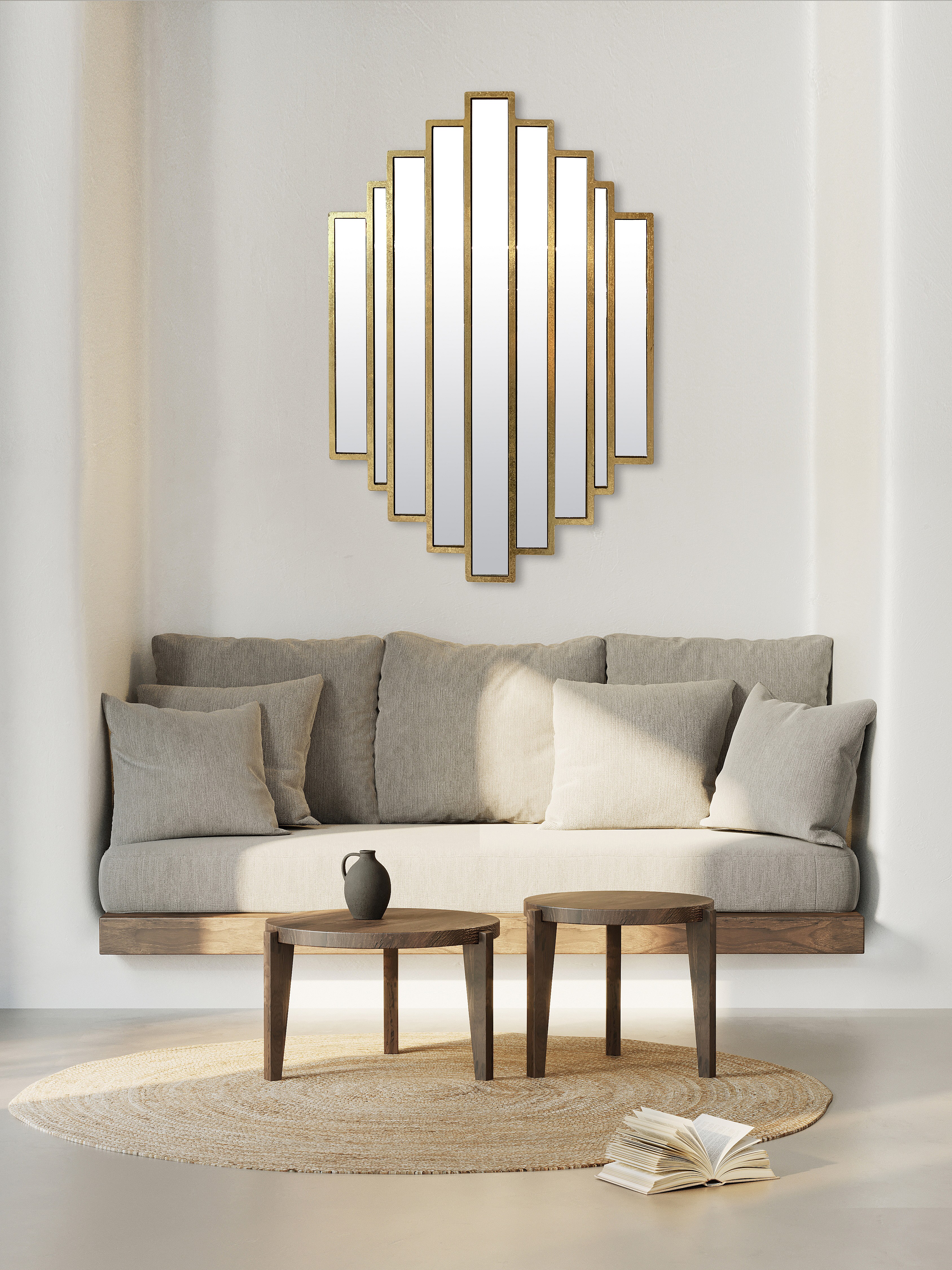 Miroir Mural Composition Déco "Stone" 91cm Or