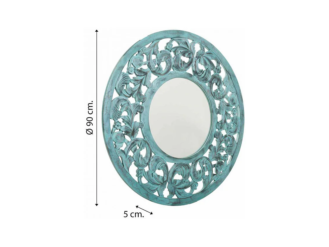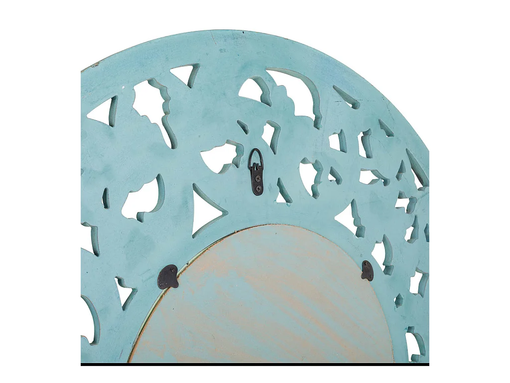 Miroir rond en bois avec relief bleu d90x2h