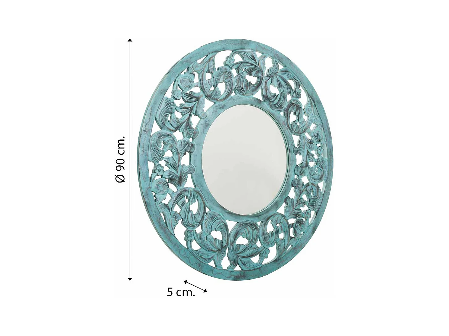 Globe Miroir 80 cm, Miroir Murale Rond Décoratif pour Couloir et Salon avec Cadre en MDF en turquoise haute brillance