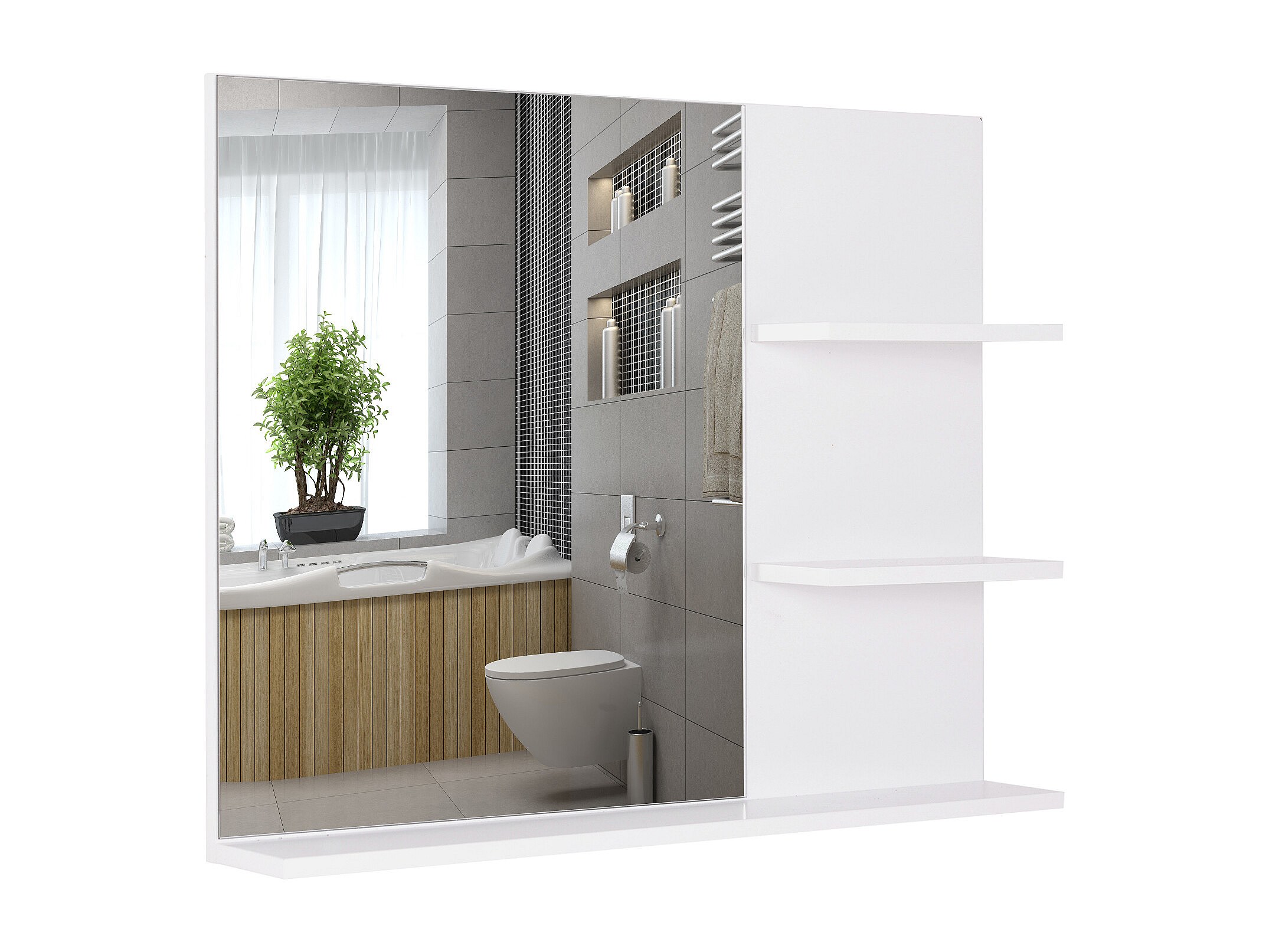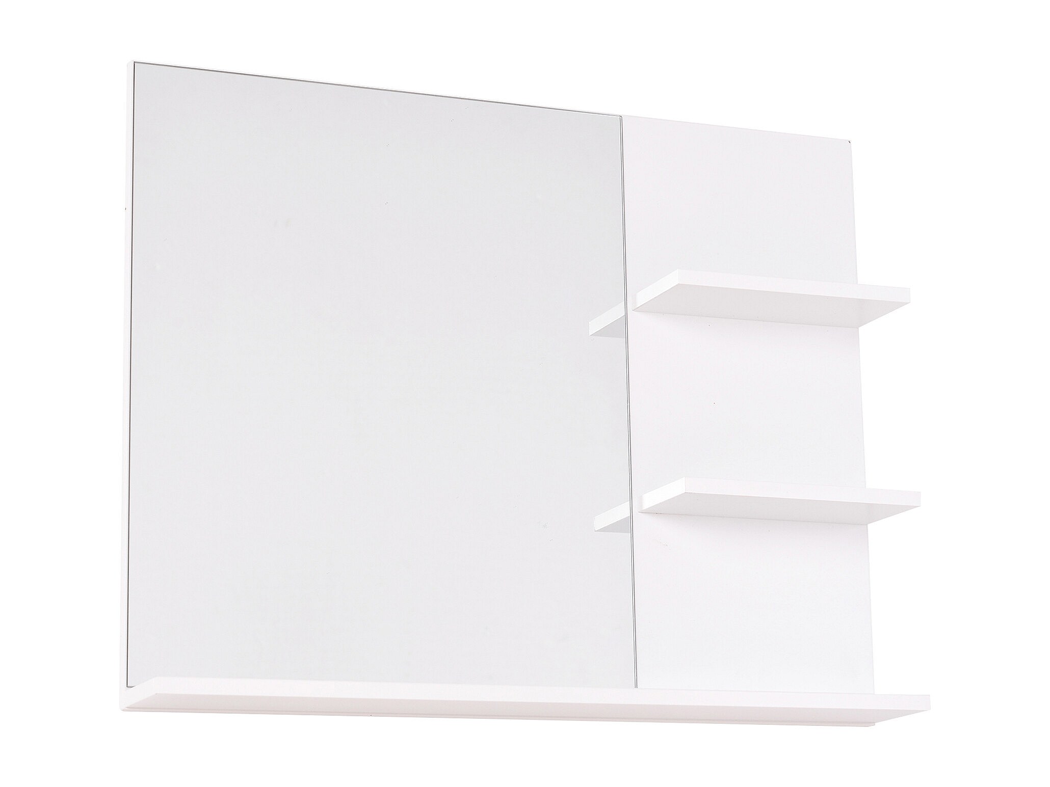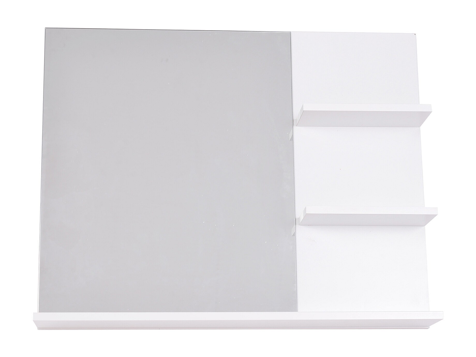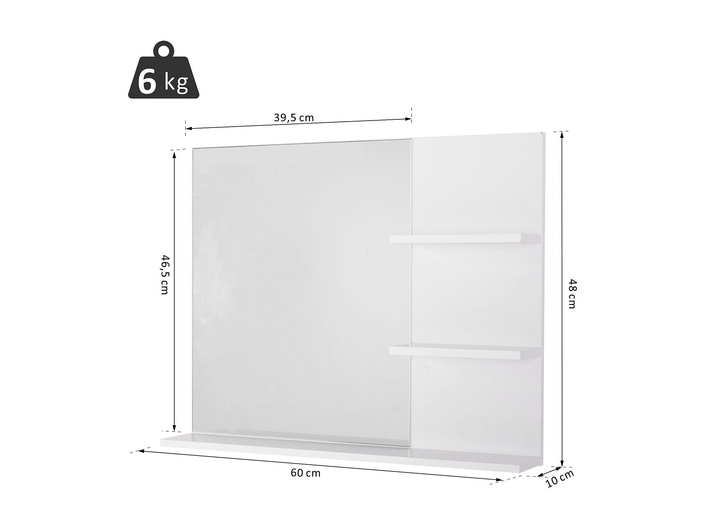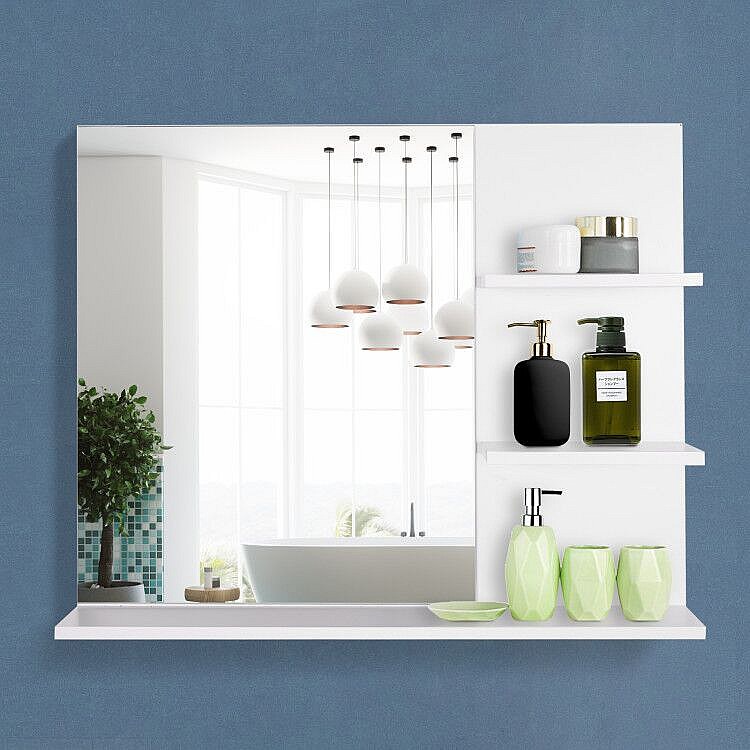 Miroir de salle de bain avec étagères - 2 étagères latérales + grande étagère inférieure - kit installation fourni - MDF blanc