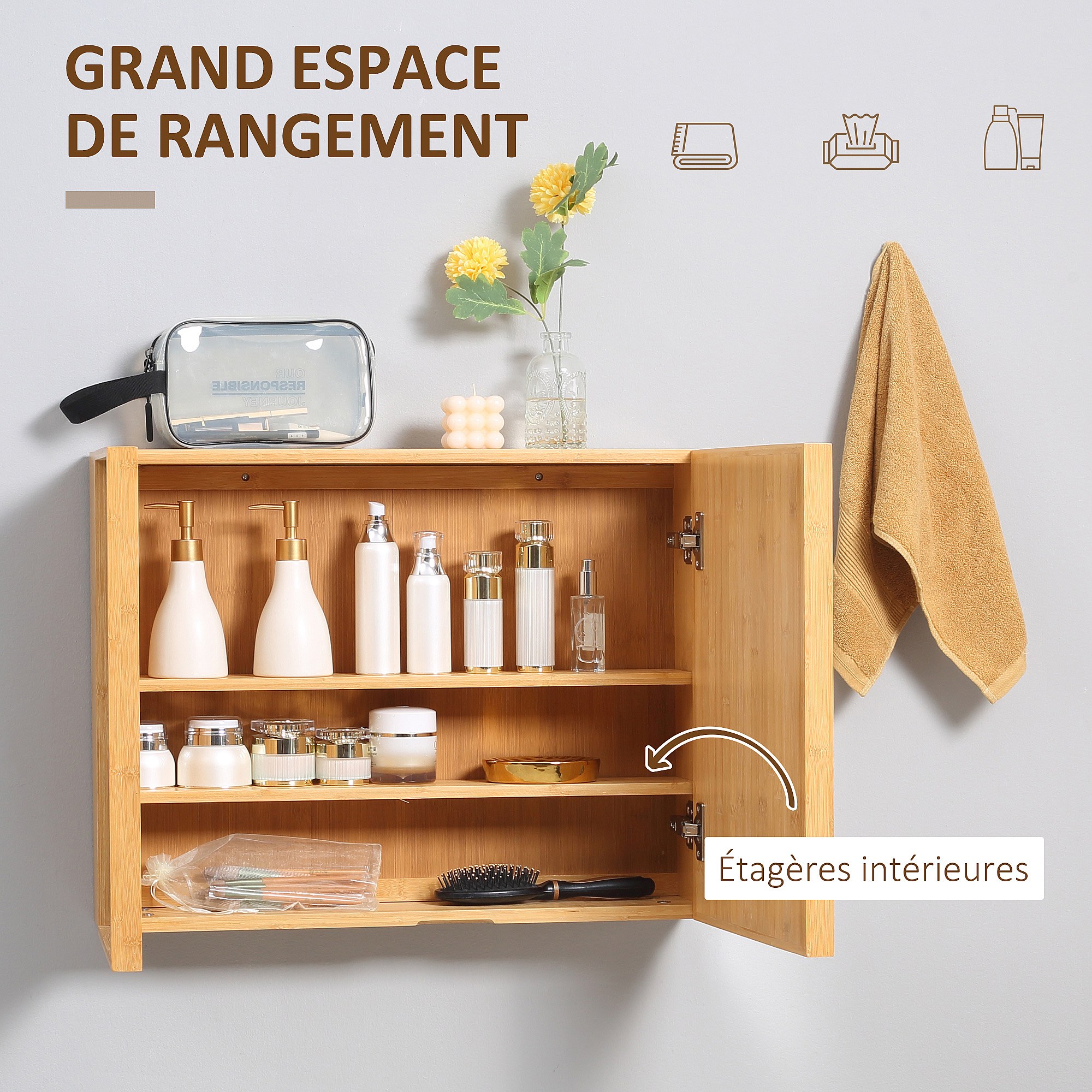Meuble haut de salle de bain en bambou naturel - L.58.5 x P.20 x H.51.5 cm