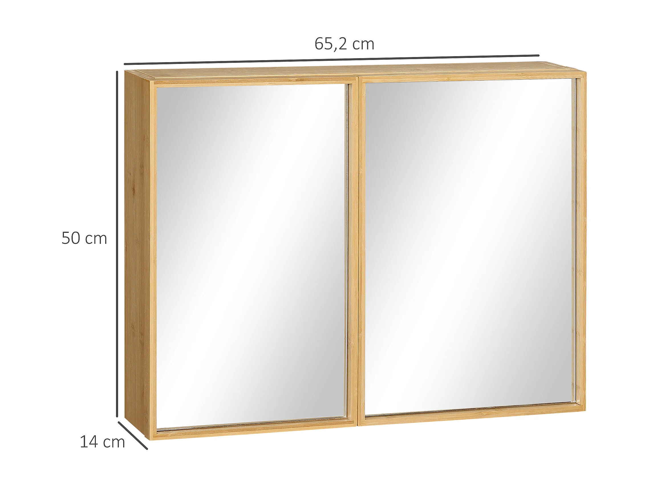 Miroir de salle de bain avec placard 2 portes - 2 étagères - bois de bambou verni