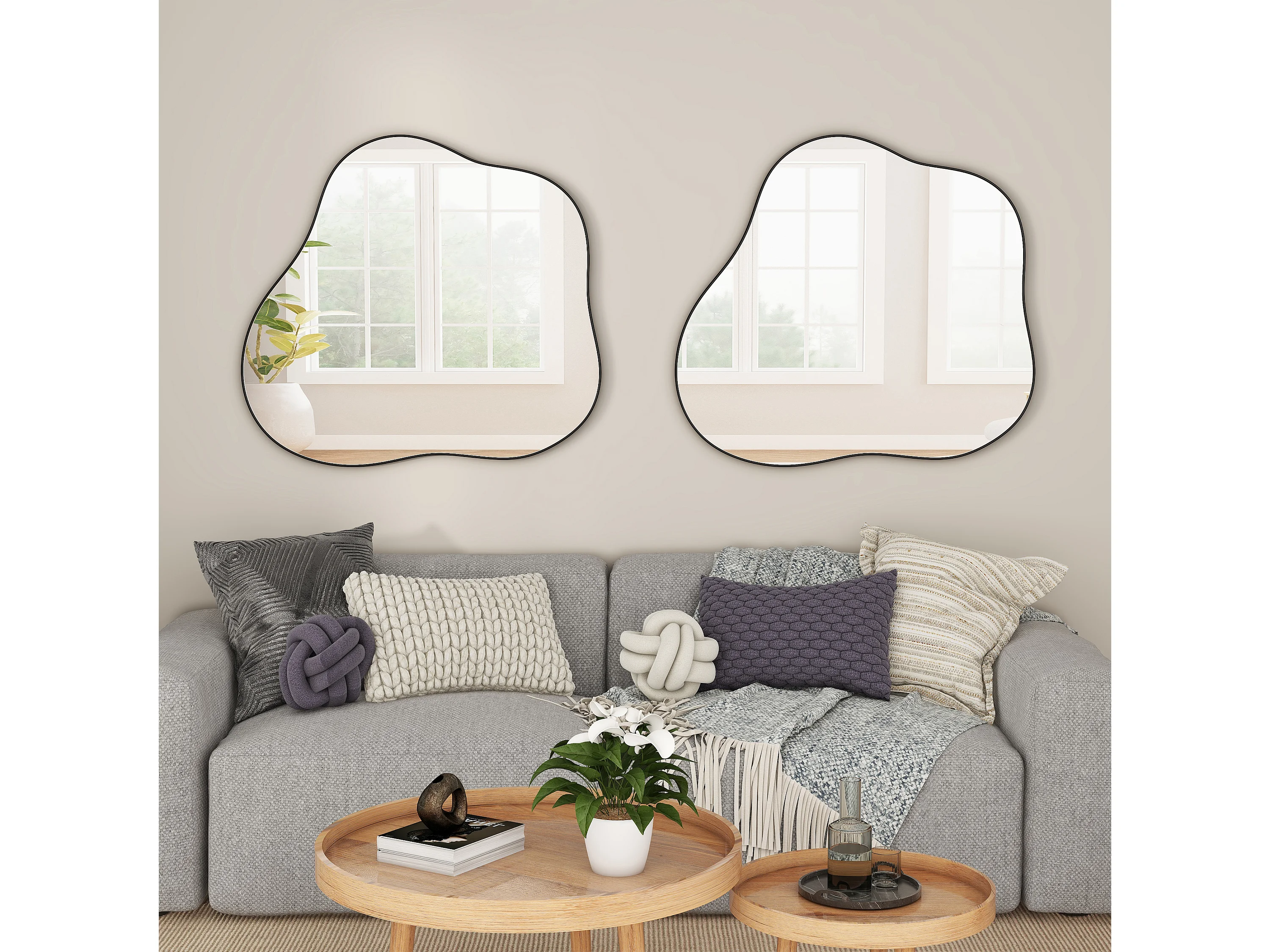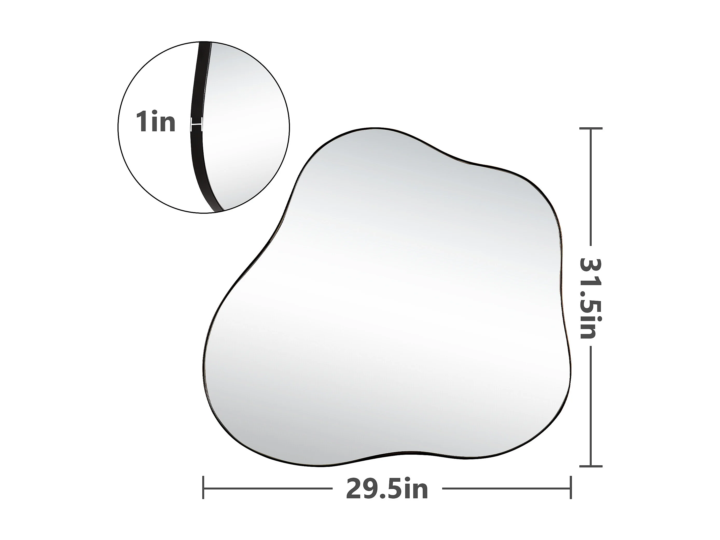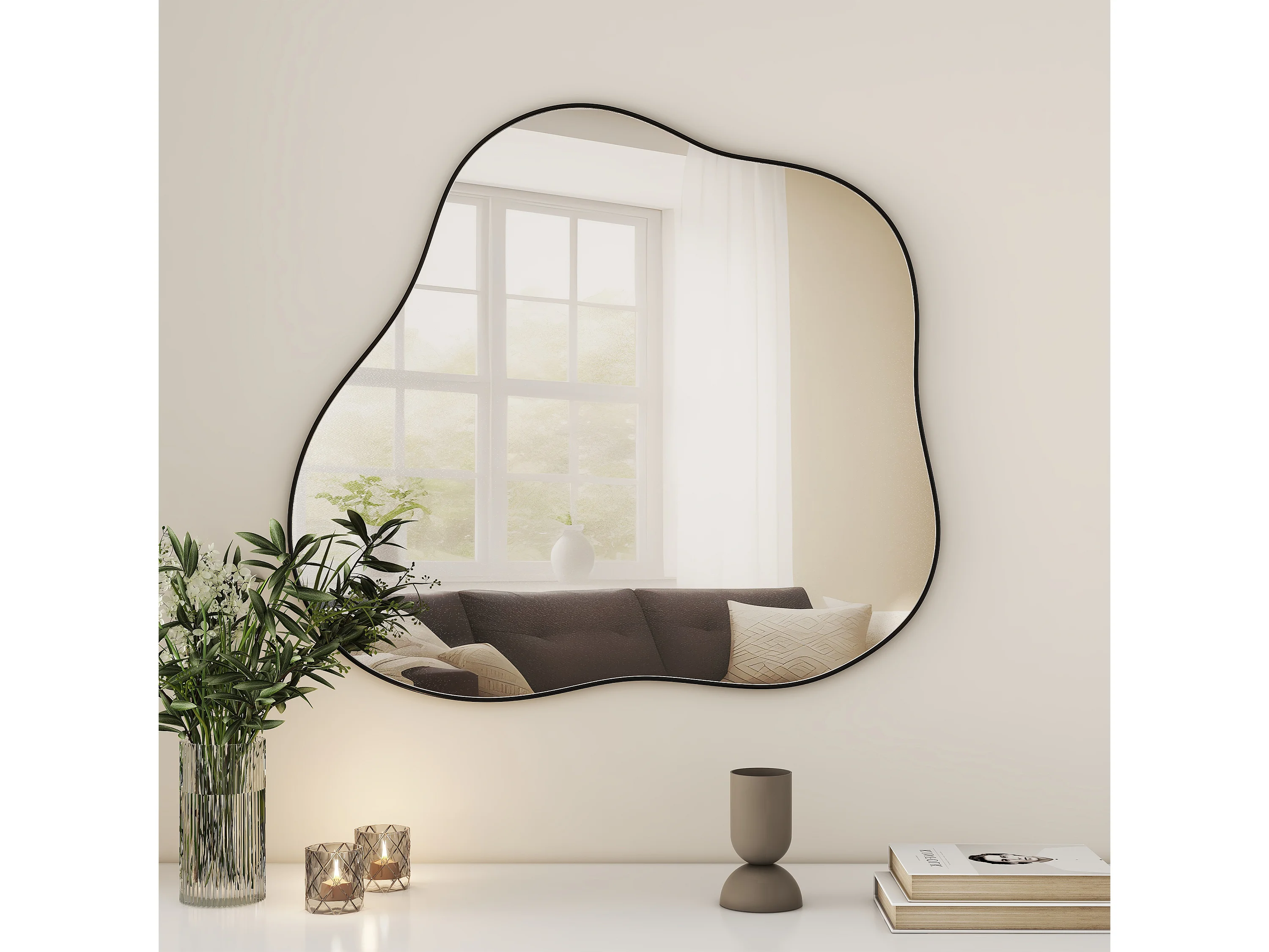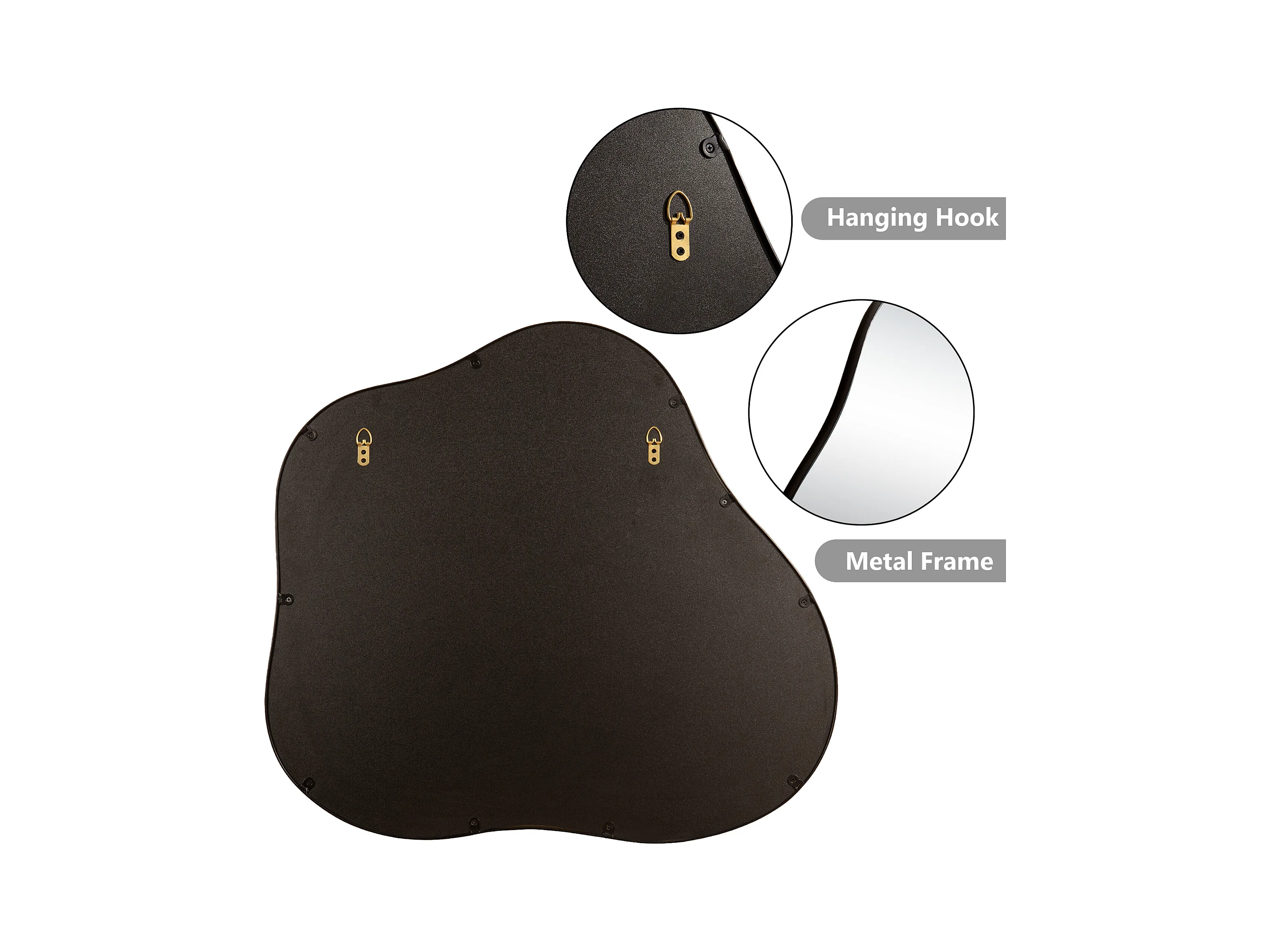 Miroir décoratif mural en métal, forme nuage irrégulière, verre et métal, noir (73x2x81 cm)