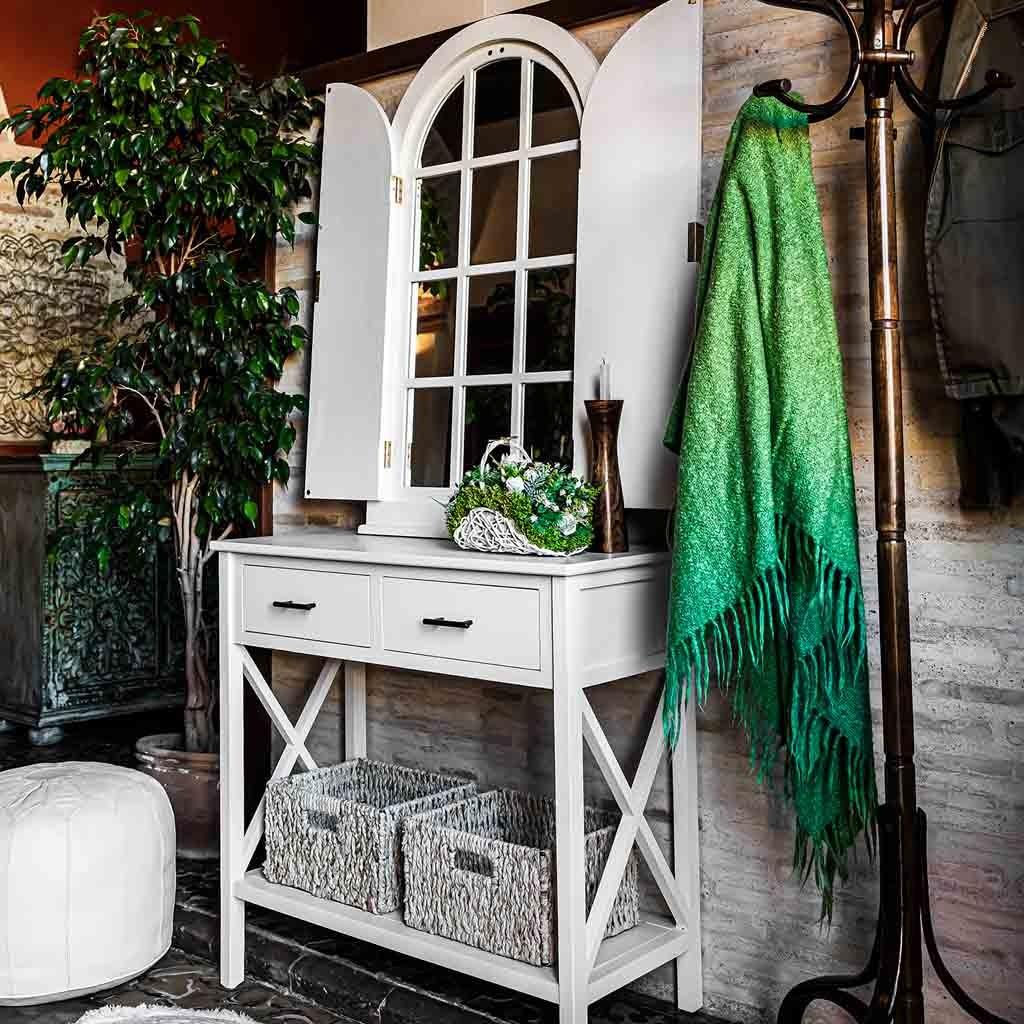 Miroir Mural en Bois Sculpté "Charme" 60cm Blanc