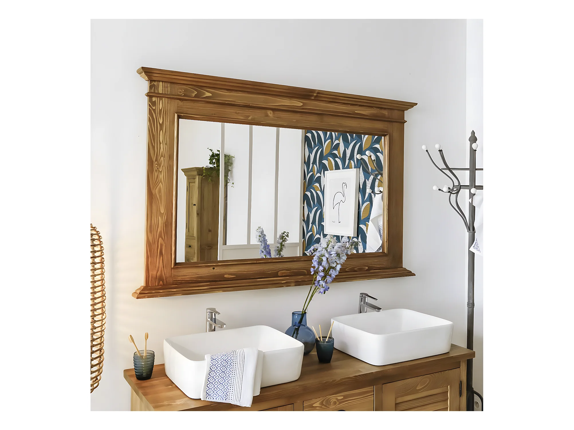 Miroir en bois de pin ciré miel Manel