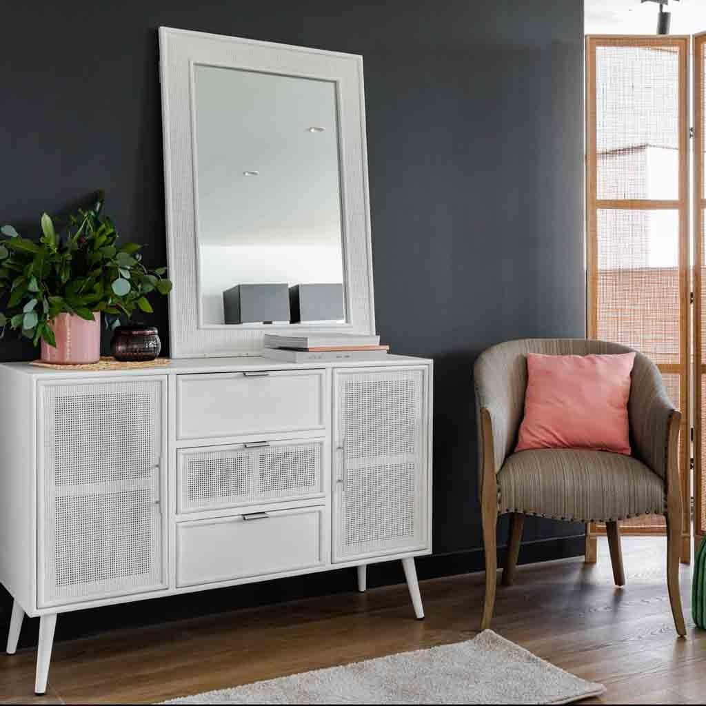 Miroir en bois et treillis blanc 70x2.5x100h