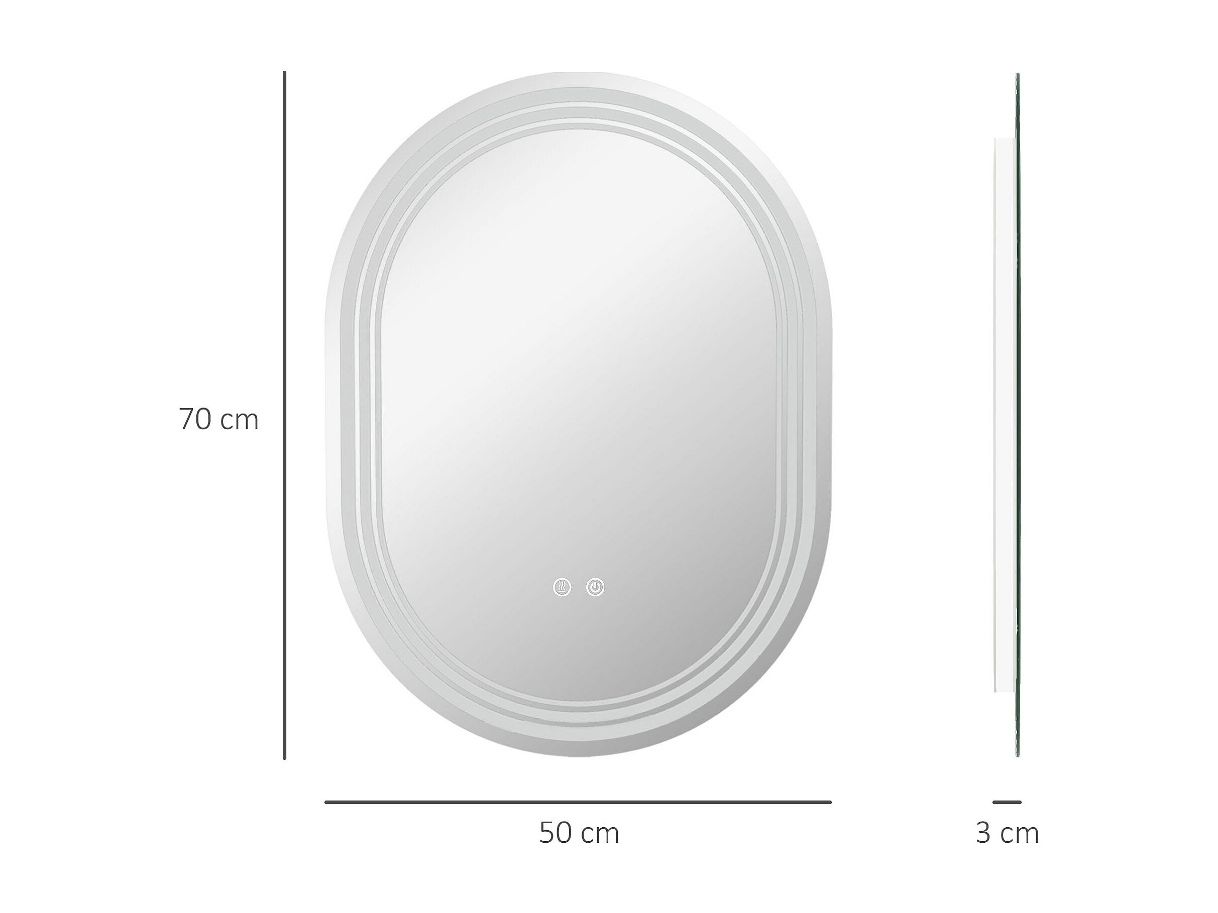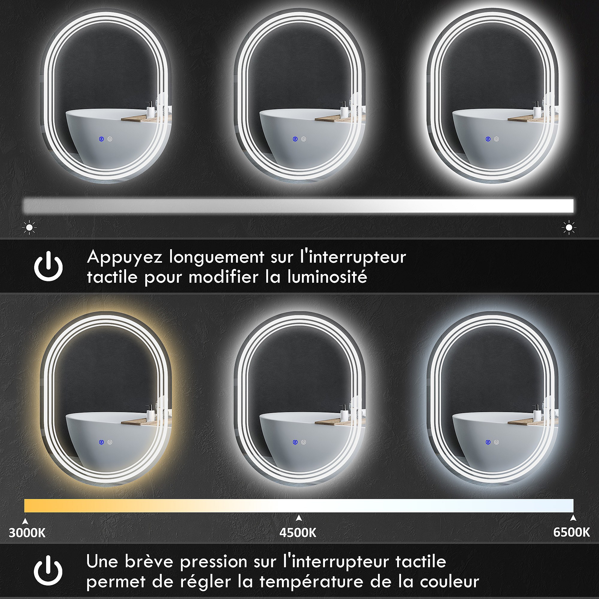 Miroir LED mural de salle de bain - 50L x 70H cm - luminosité réglable 3 couleurs - interrupteur tactile - système antibué