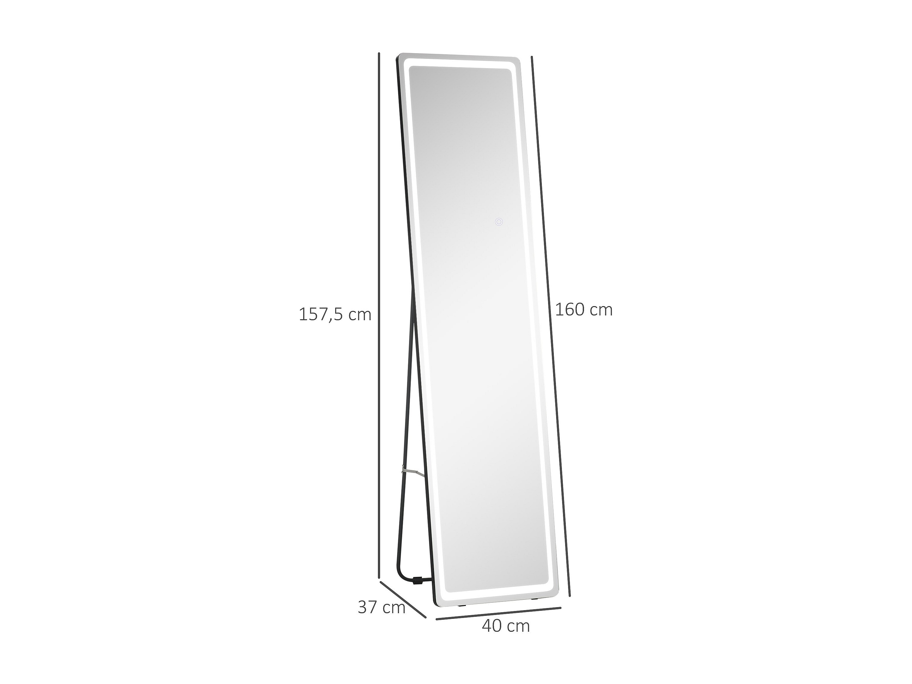 Miroir sur pied blanc avec LED noir 34x37x146 cm FR85043