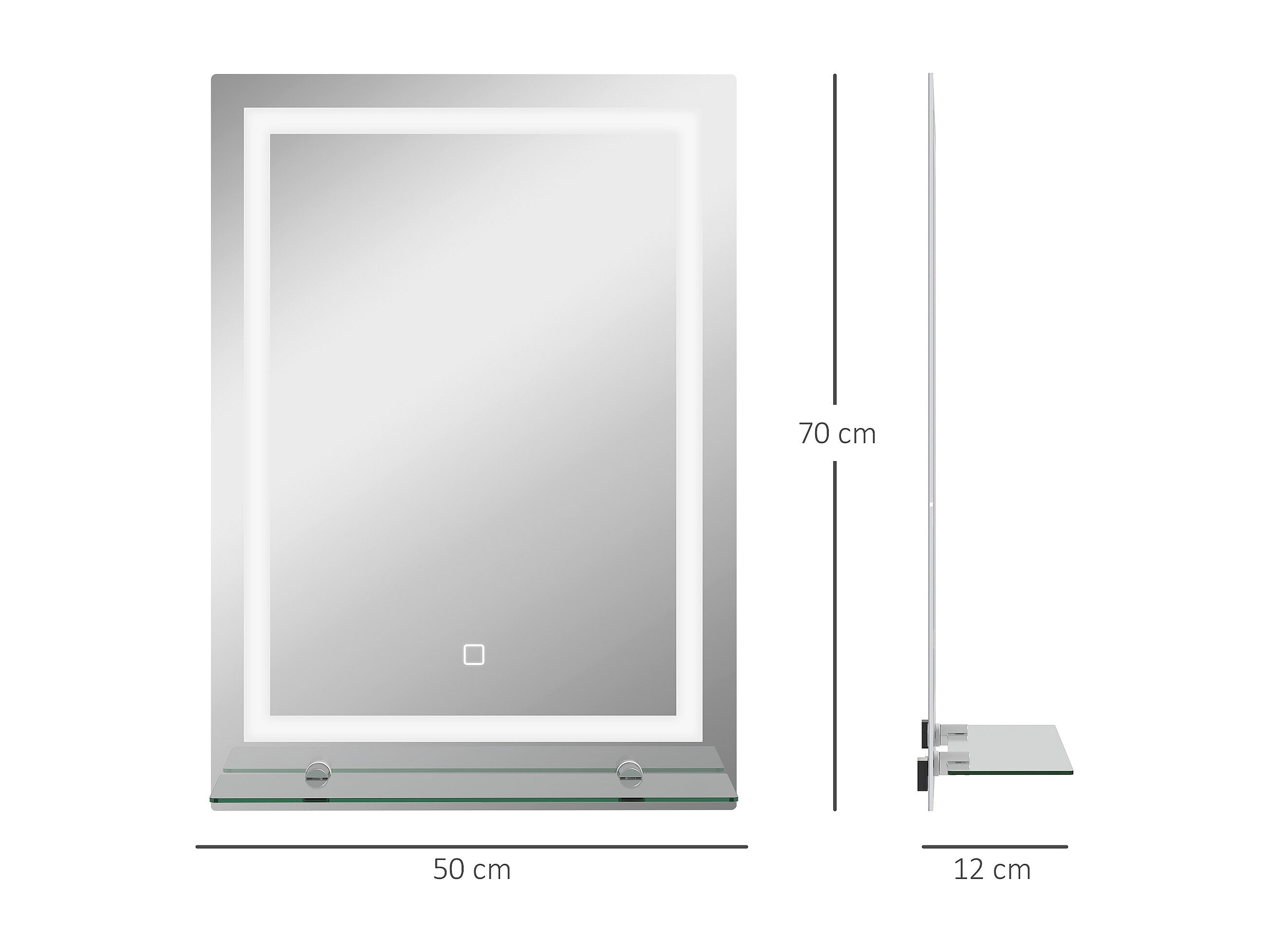 Miroir lumineux LED 20 W interrupteur tactile étagère intégrée 50L x 12l x 70H cm