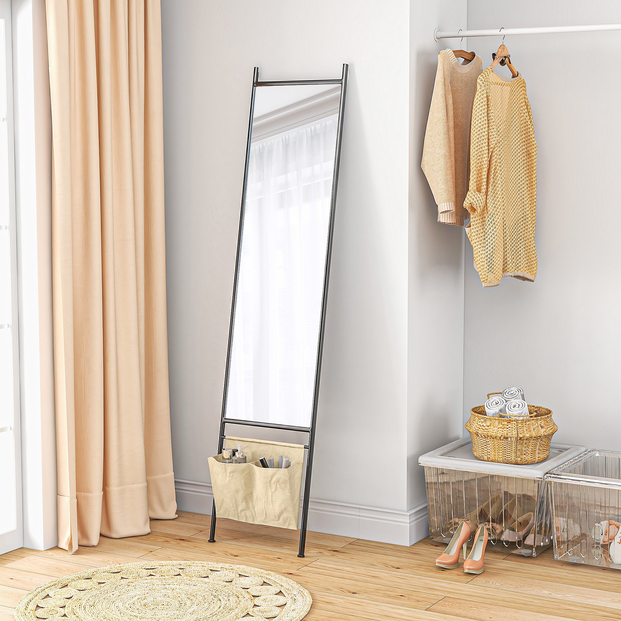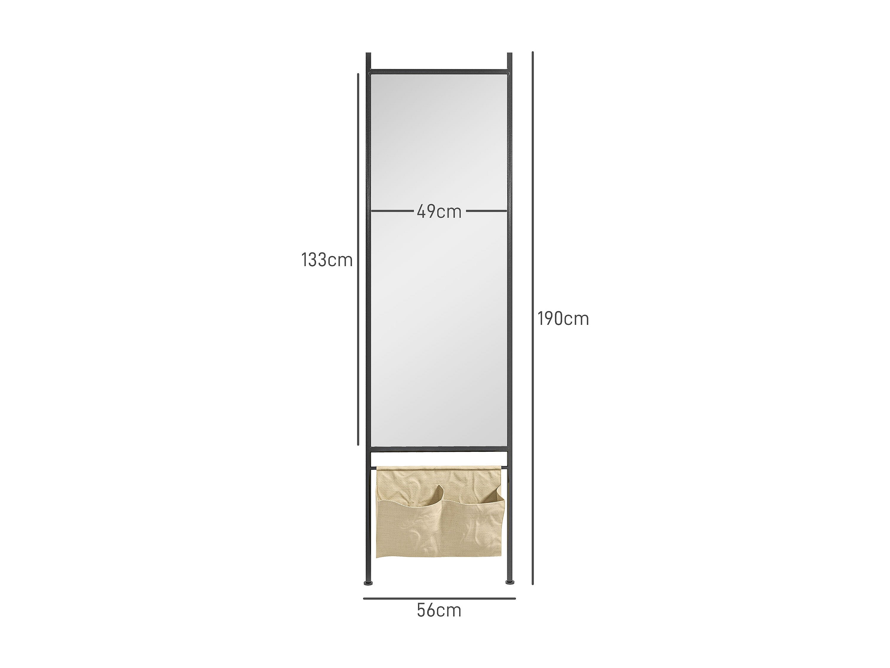 Miroir rectangulaire sur pied dim. 56L x 2l x 190H cm - 2 pochettes rangement - métal noir