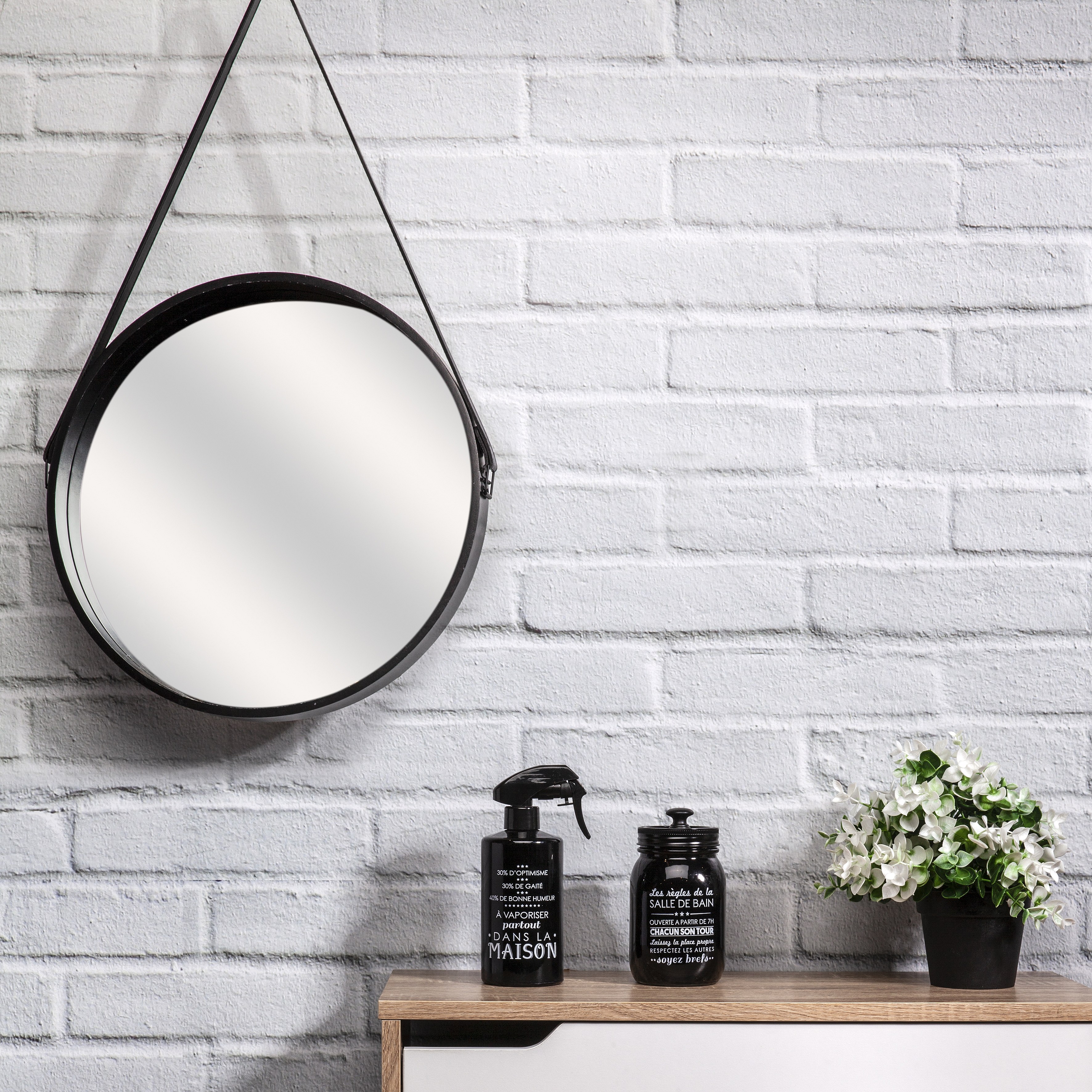 Miroir Rond Avec Anse Pu Noir 50cm Noir