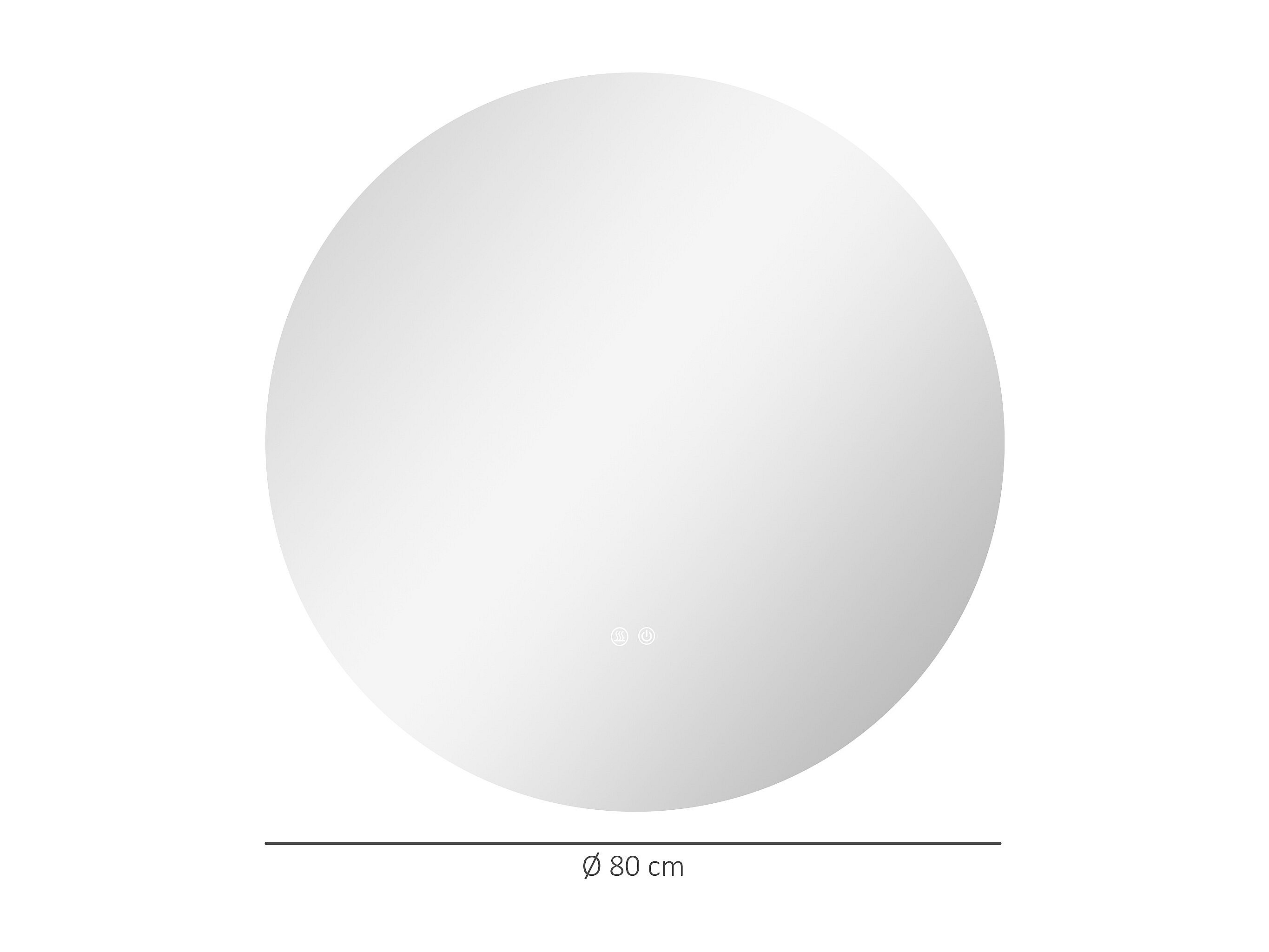 Miroir rond lumineux LED réglable de salle de bain dia. 80 cm interrupteur tactile fonction antibuée gris