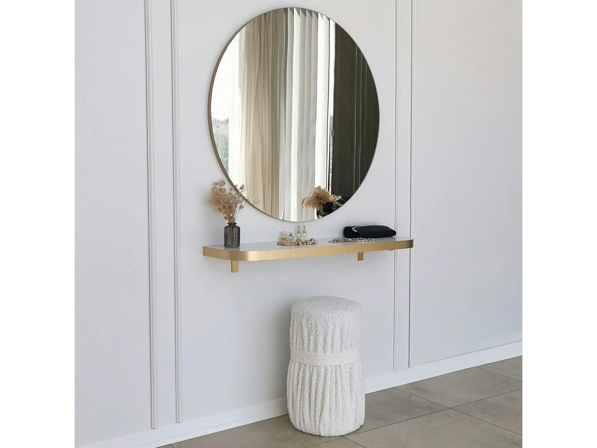 Miroir rond moderne avec bordure dorée Ø90 cm CODY
