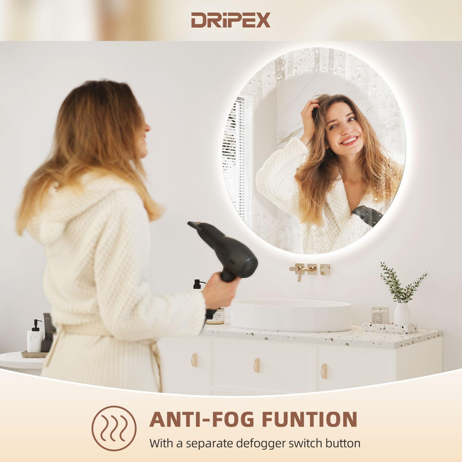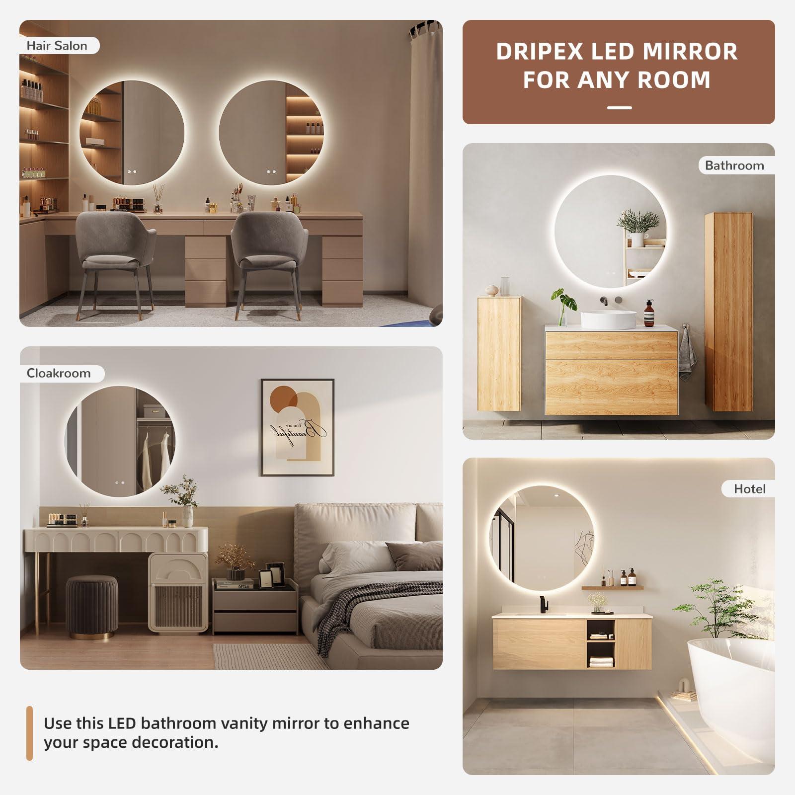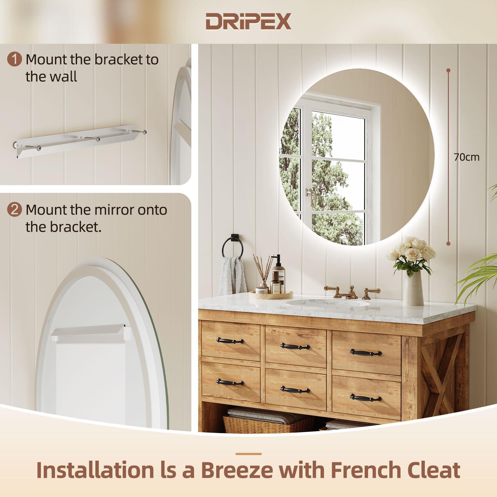 Miroir Salle de Bain LED Rond 70cm, Anti-buée, 3 Couleurs, Dimmable, Interrupteur Tactile