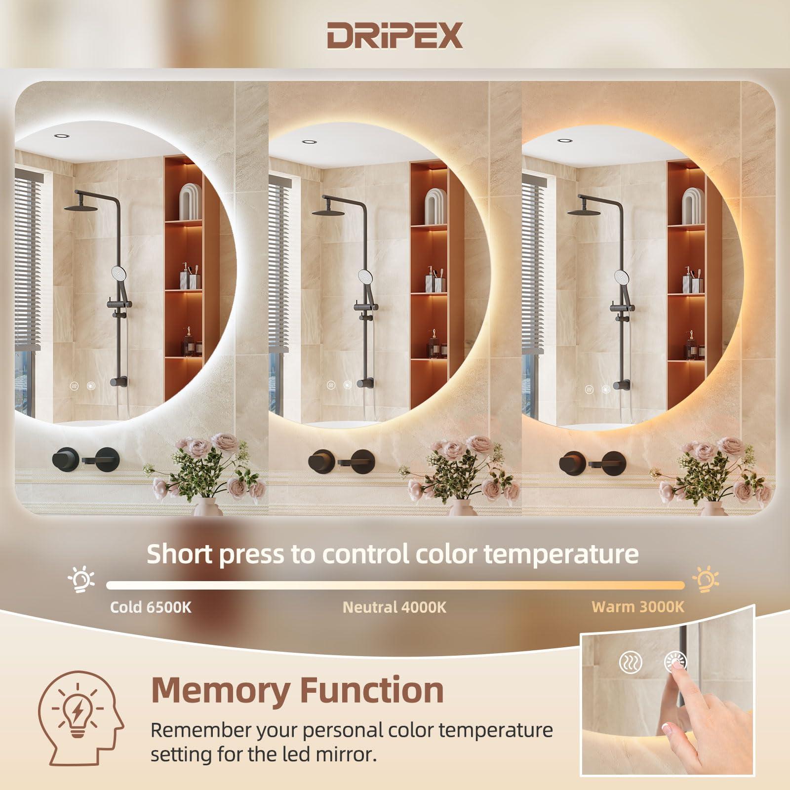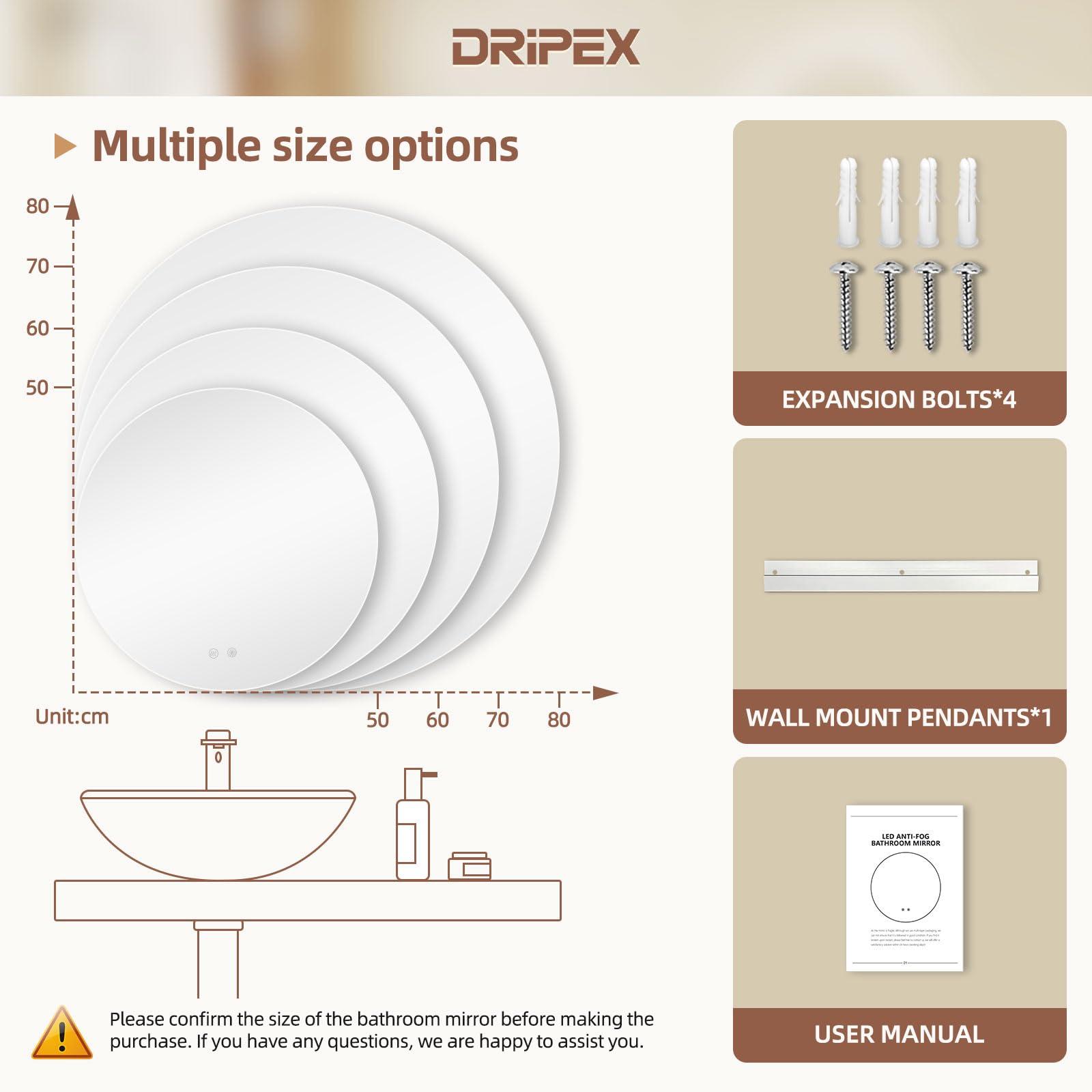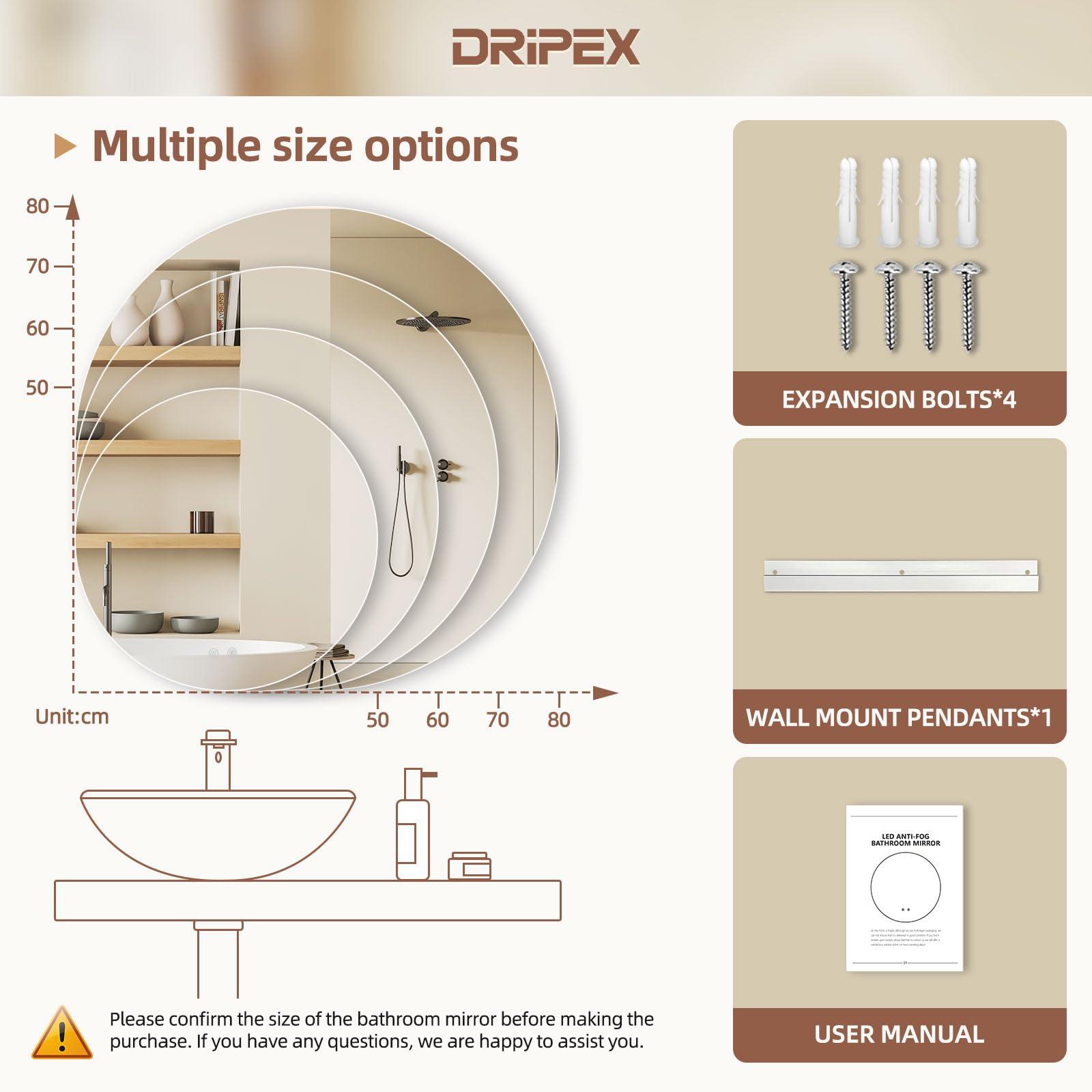 Miroir Salle de Bain LED Rond 70cm, Anti-buée, 3 Couleurs, Dimmable, Interrupteur Tactile