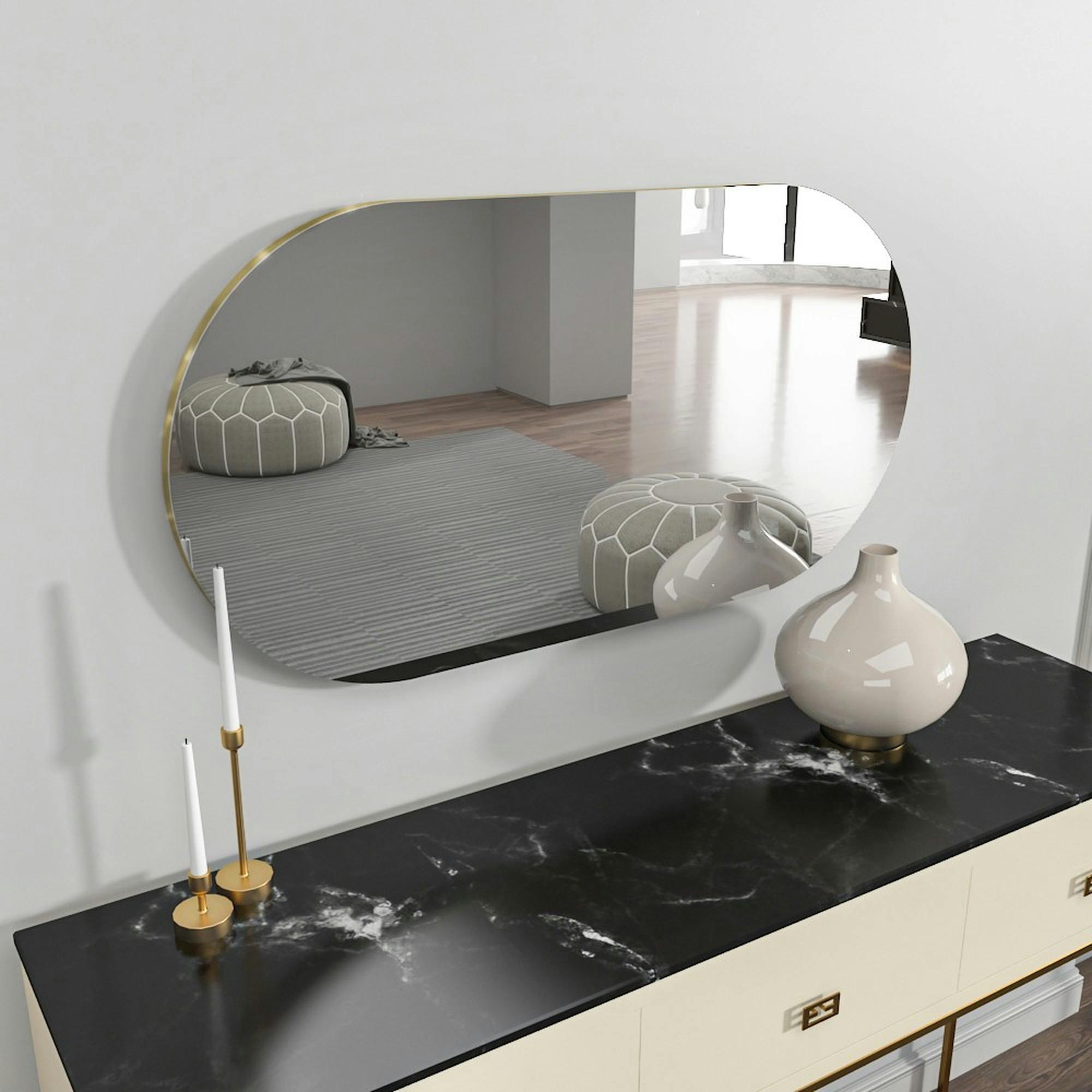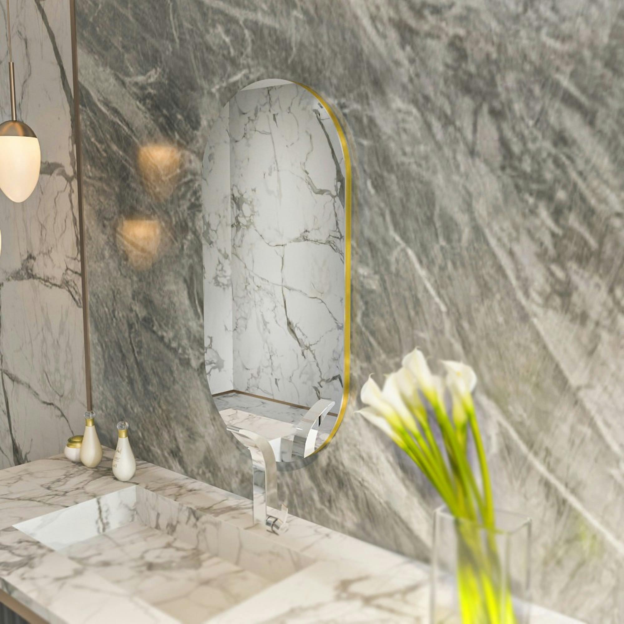 Miroir salle de bains ovale argenté, bordure dorée 85 cm CODY