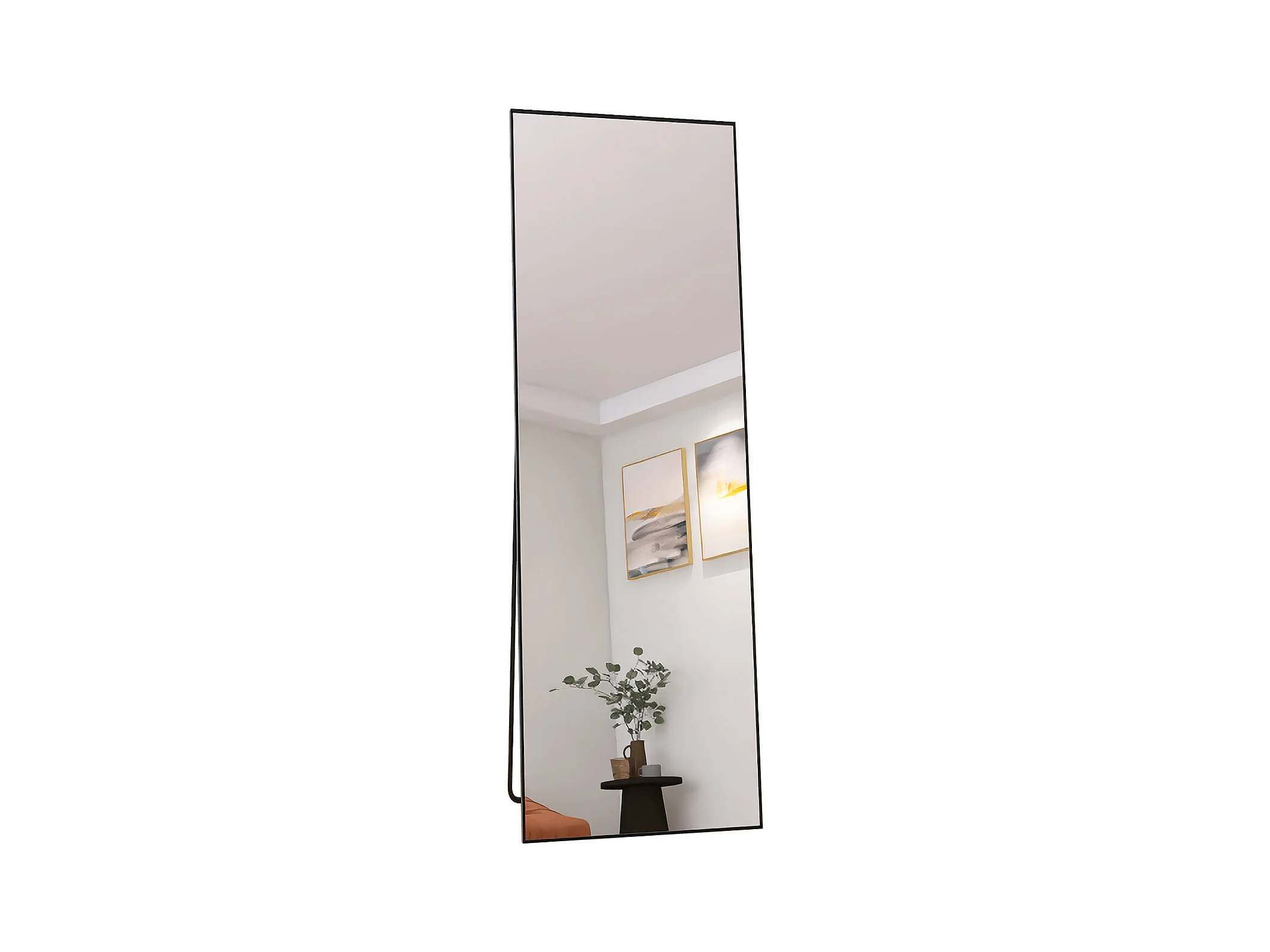 Miroir sur Pied 162x53 cm, Cadre Aluminium Noir, Miroir Mural Moderne à Poser ou Suspendre