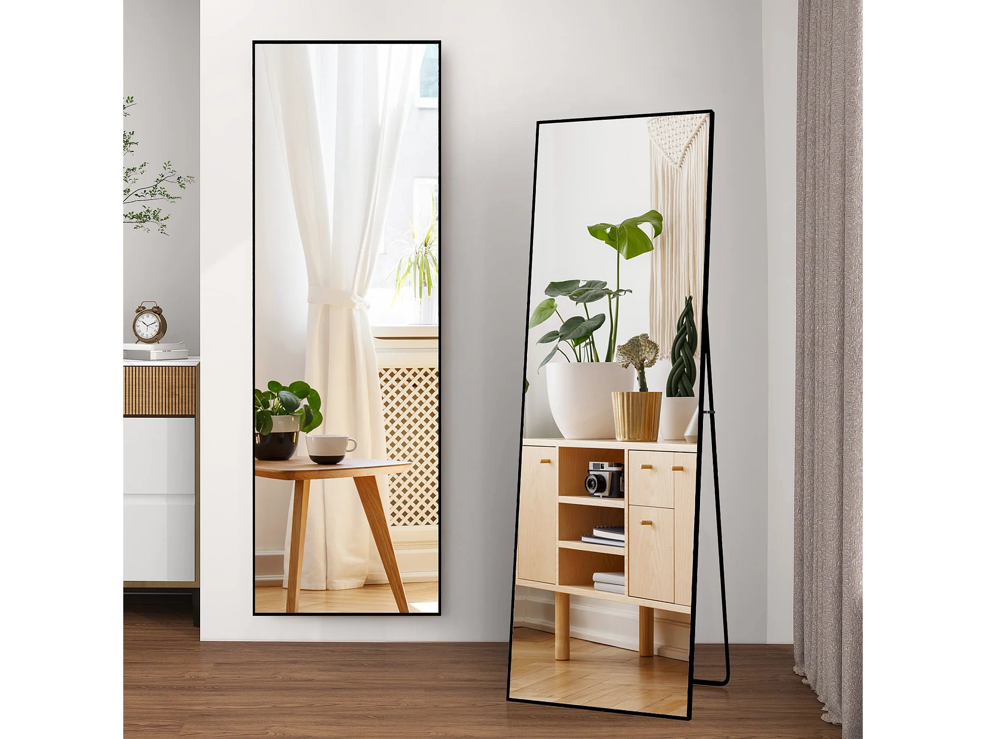 Miroir sur pied 164 x 54 cm - miroir autoportant, à accrocher ou à poser contre un mur - grand miroir sur pied - noir