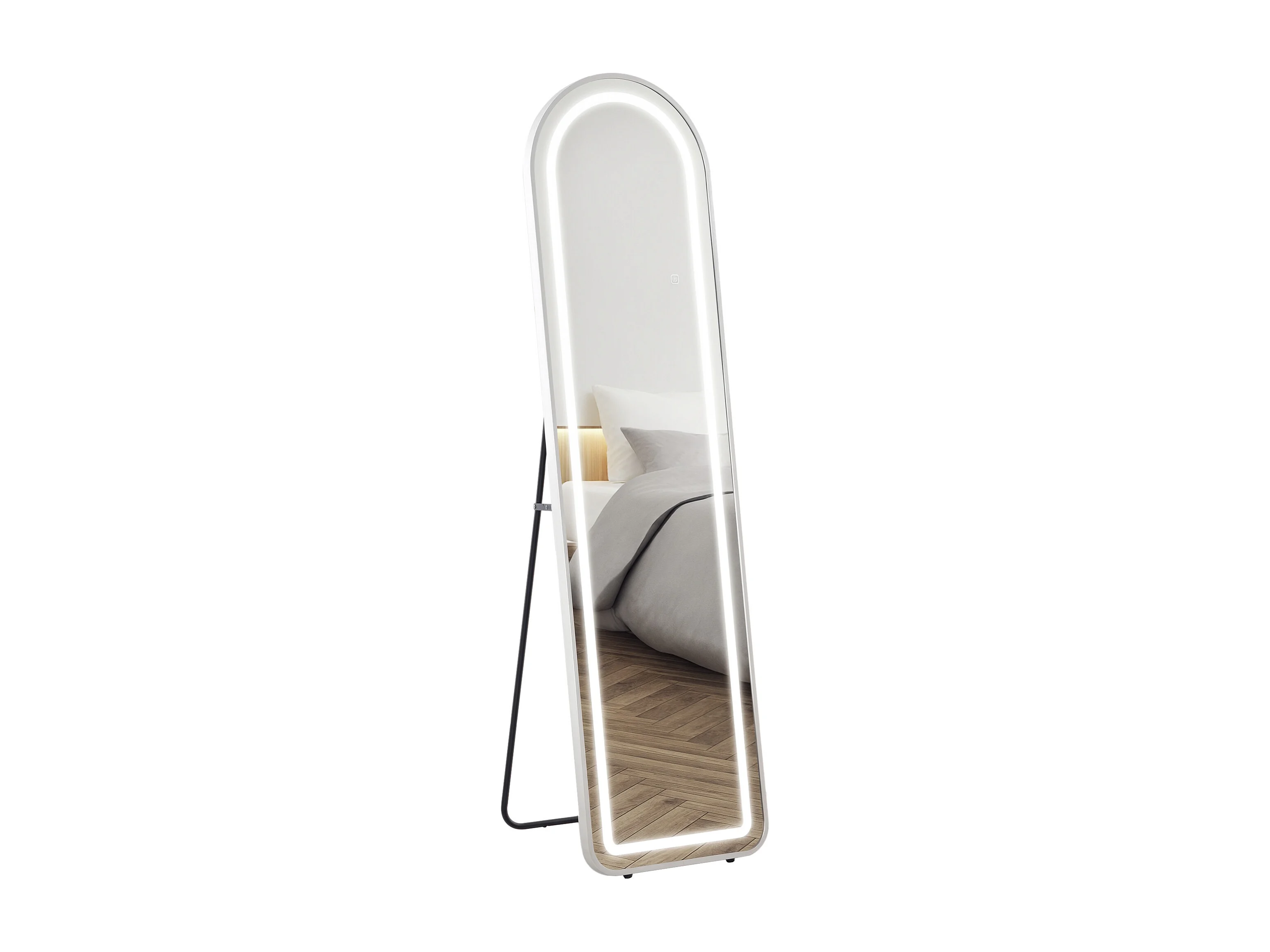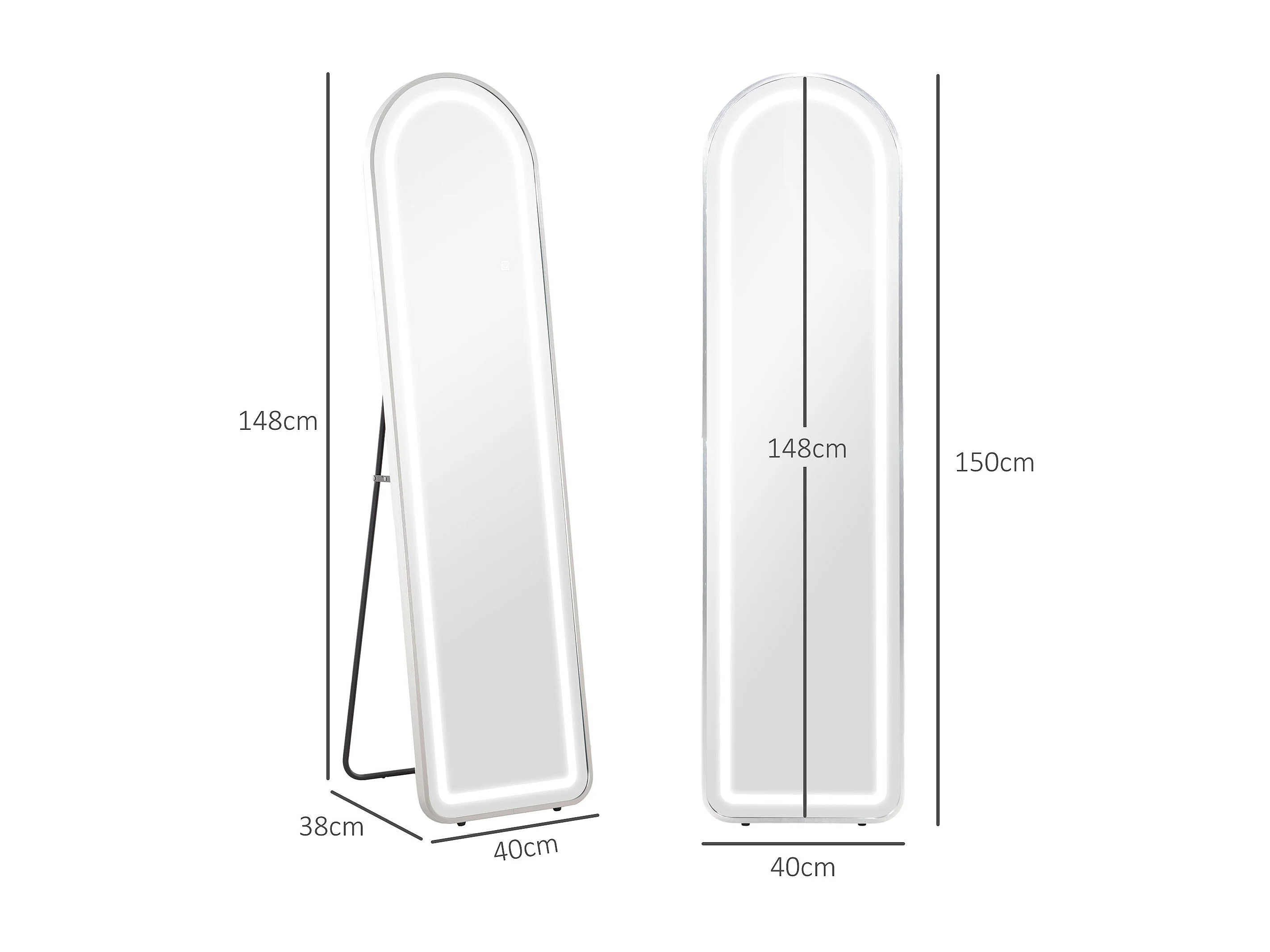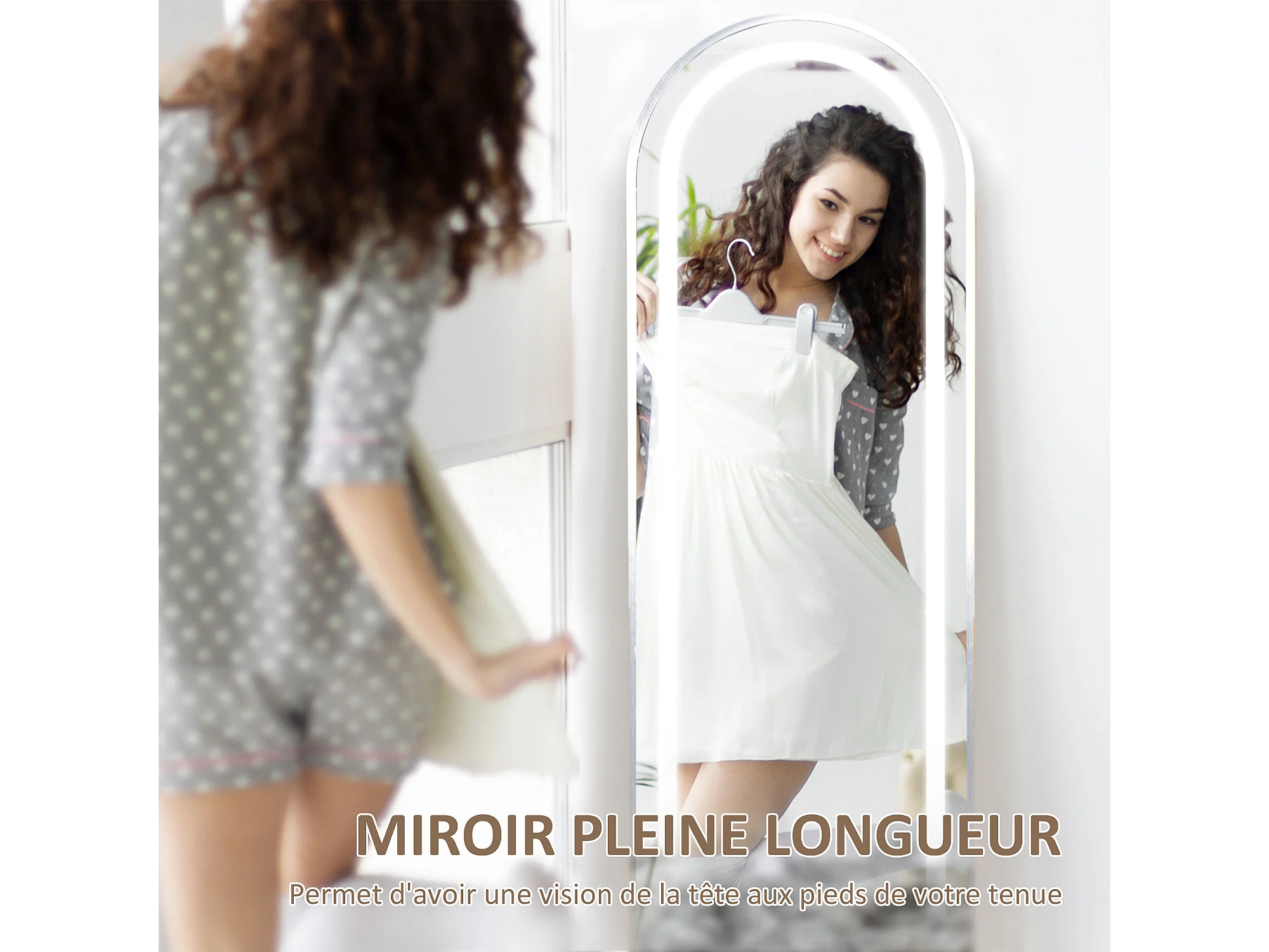 Miroir sur pied arqué - miroir lumineux LED réglable tactile dim. 40L x 150H cm - métal noir alliage alu verre trempé