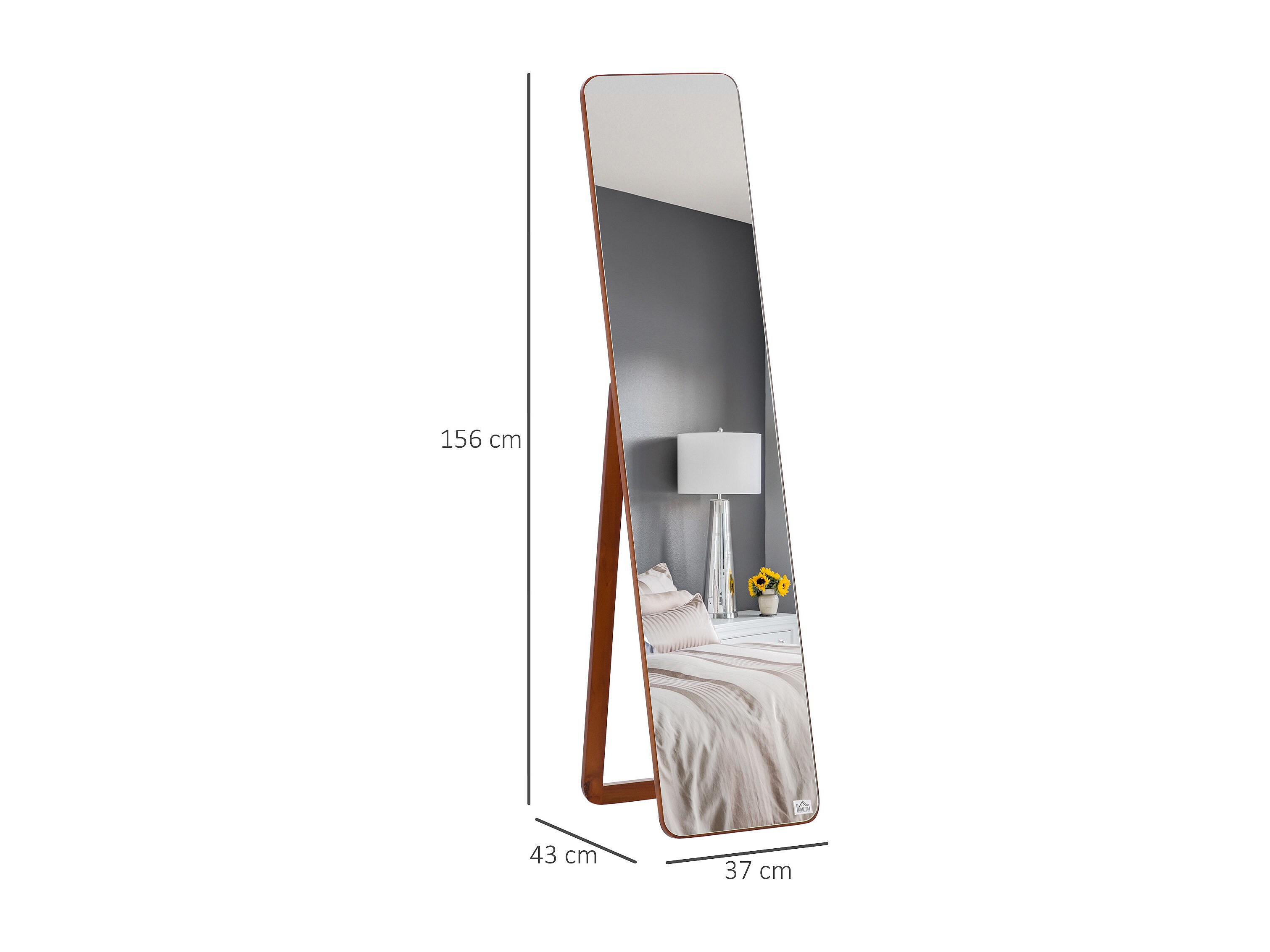 Miroir sur pied inclinable, cadre MDF, finition café, facile d’entretien (47x46x148cm)