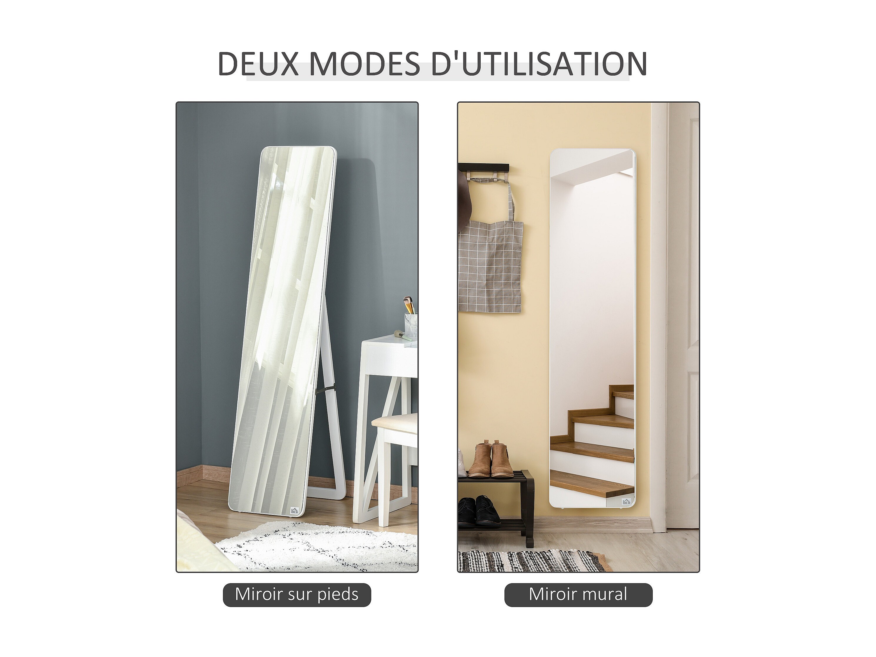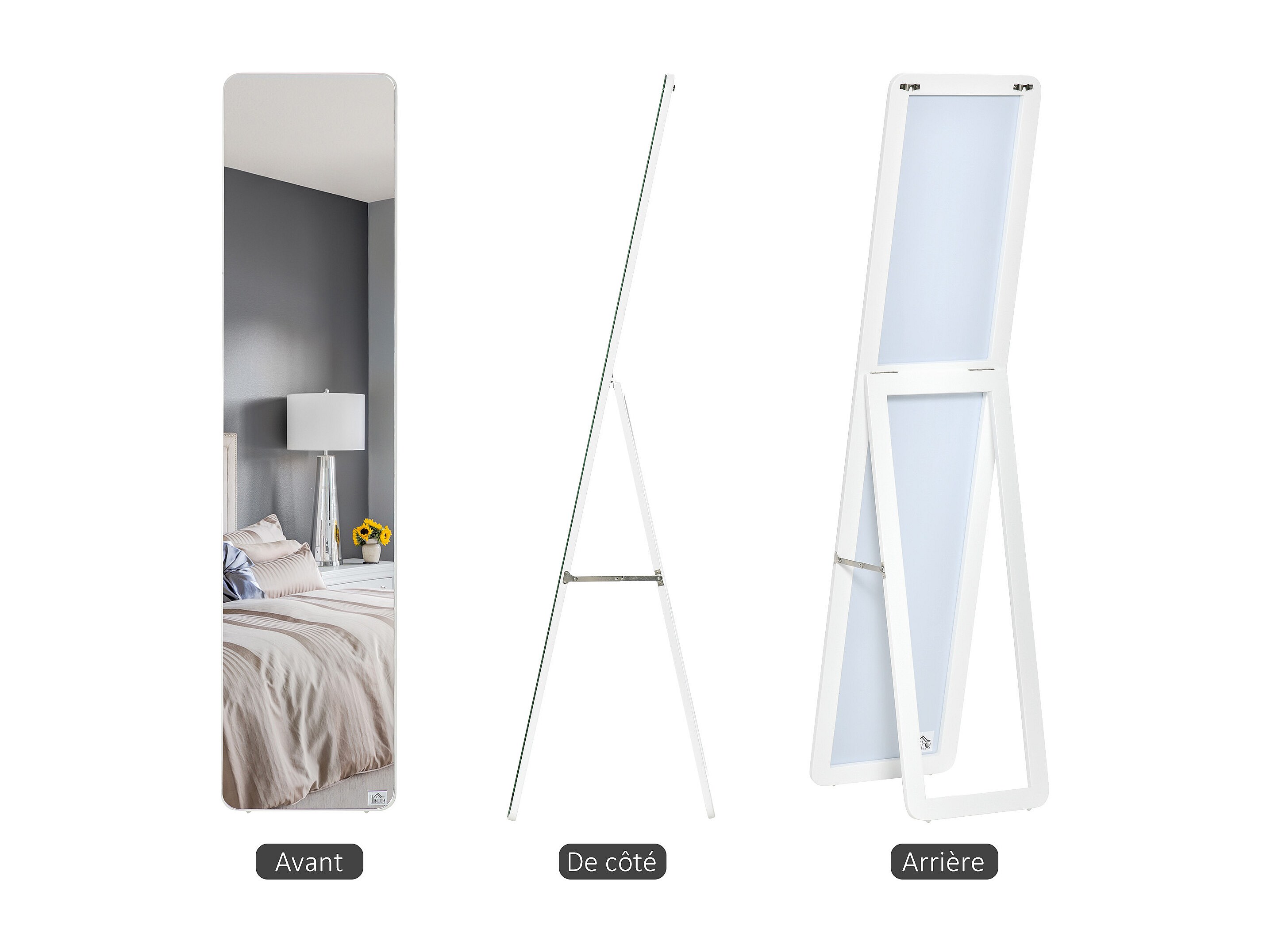 Miroir sur pied et mural rectangulaire dim. 37L x 48l x 152H cm blanc