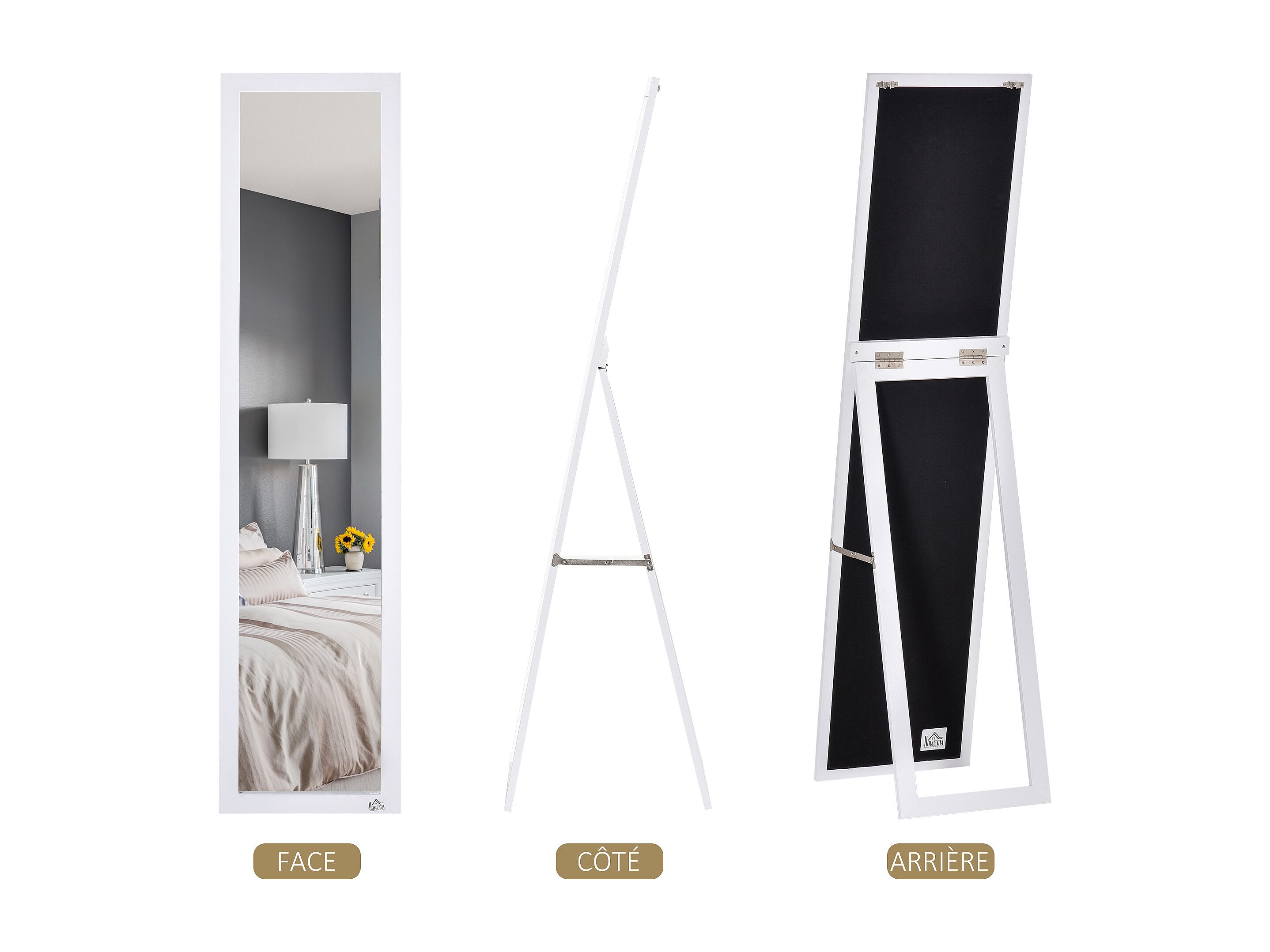 Miroir sur pied et mural rectangulaire dim. 37L x 48l x 152H cm blanc
