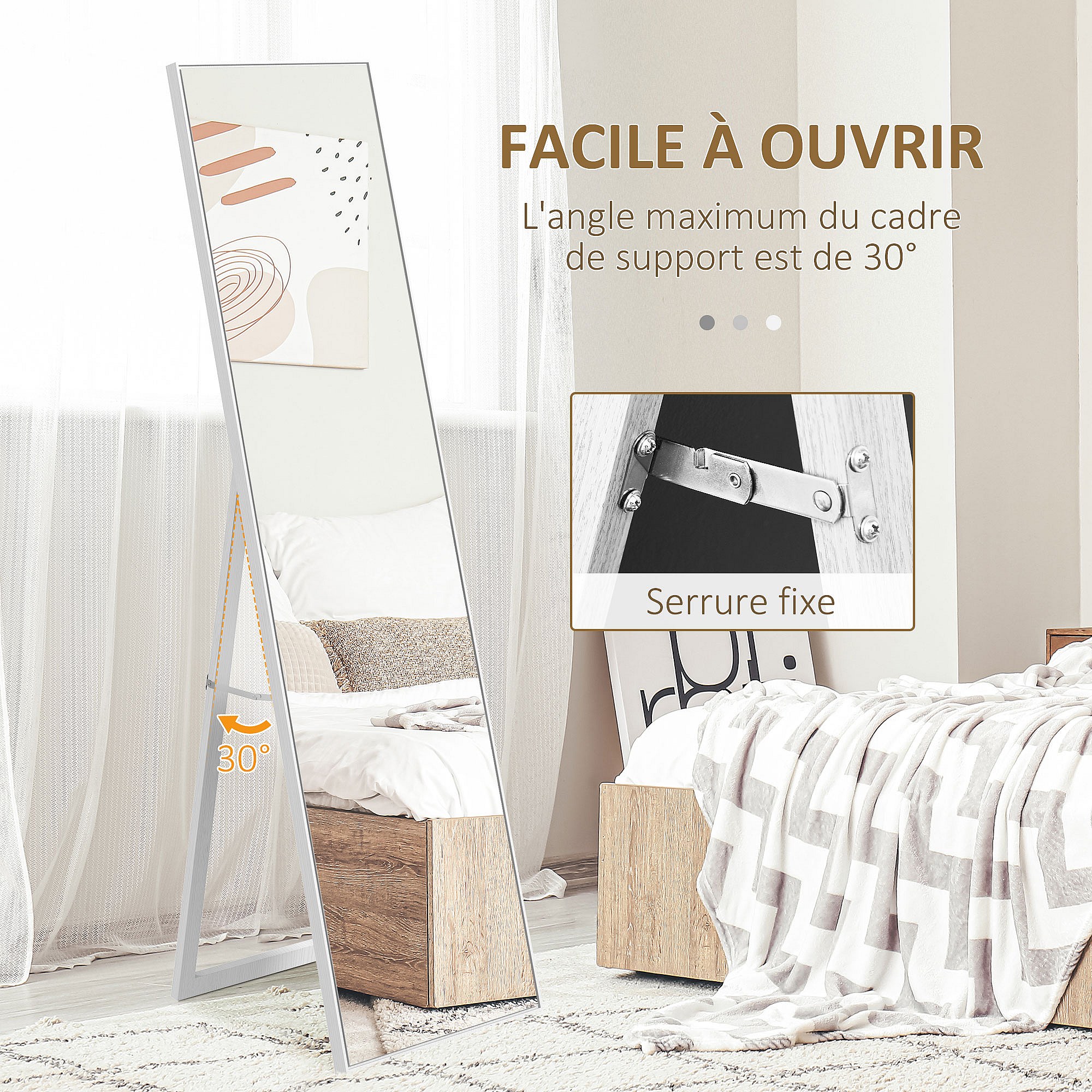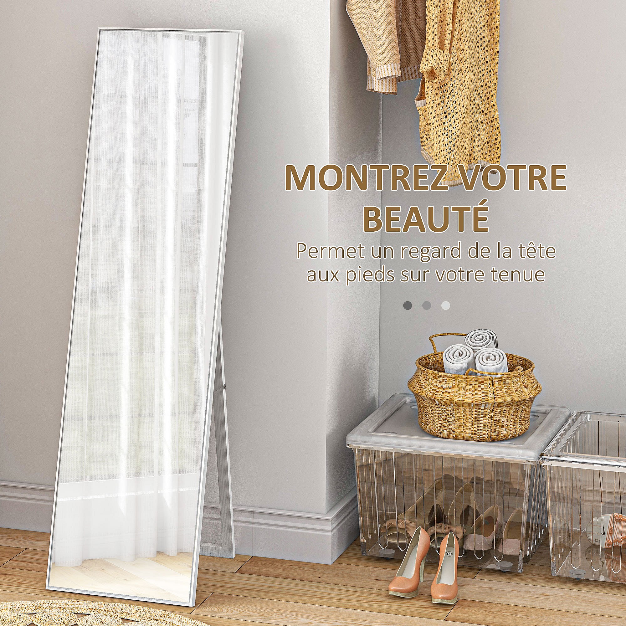 Miroir sur pied et mural rectangulaire dim. 37L x 48l x 152H cm blanc