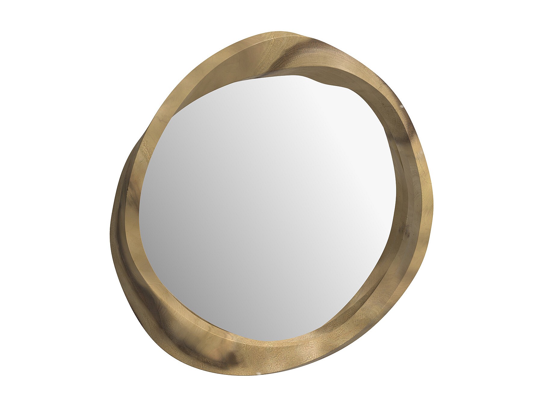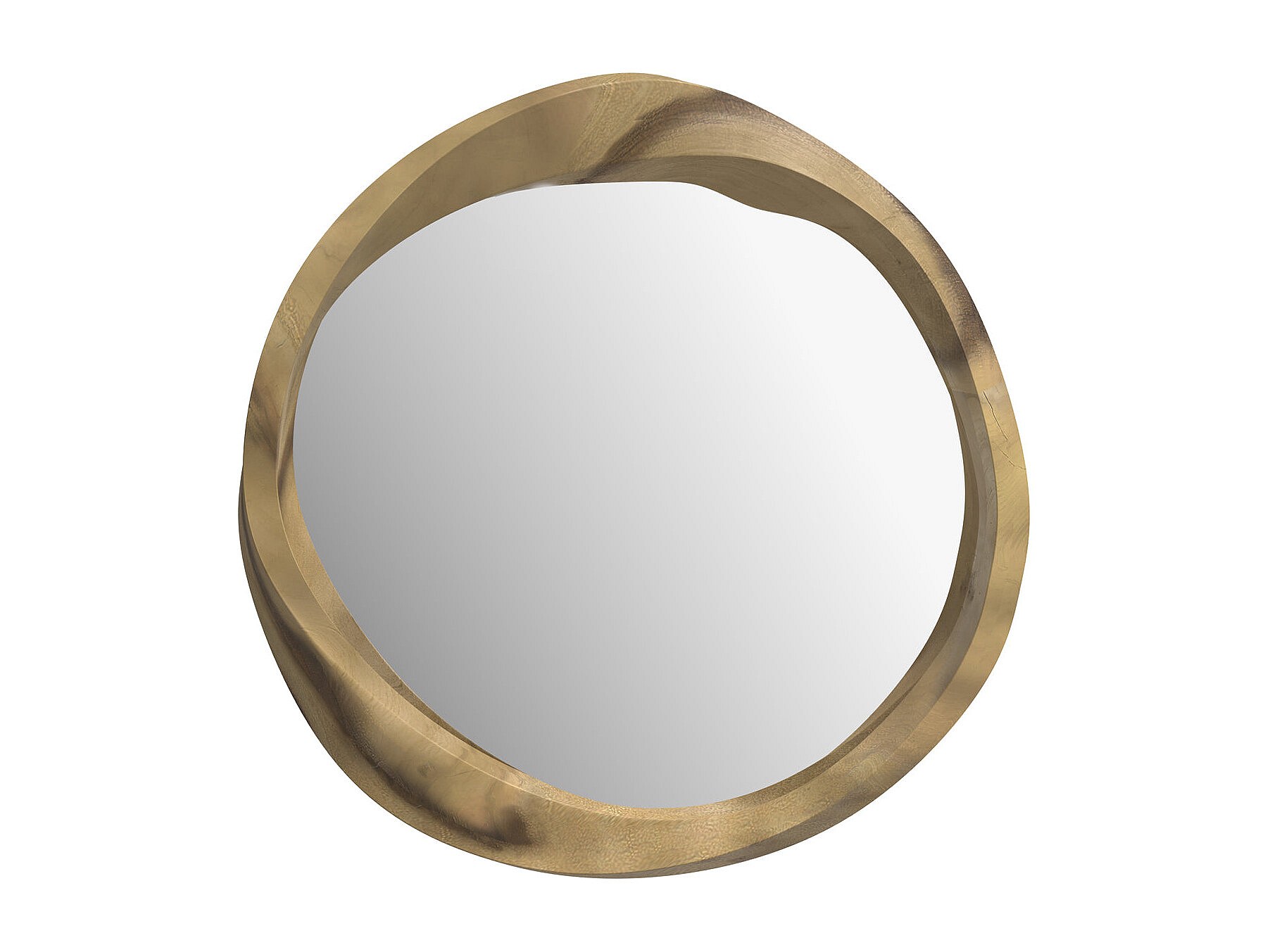 Miroir mural rond bois foncé et métal doré Caesar D 91cm