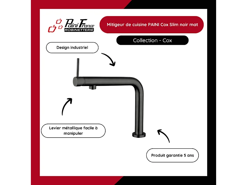 Mitigeur de cuisine PAINI Cox Slim noir mat