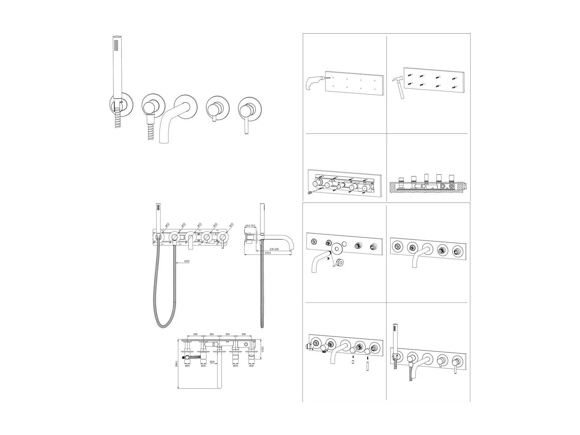 Mitigeur de douche et de baignoire à encastrer - 5 sorties - Y - Chrome
