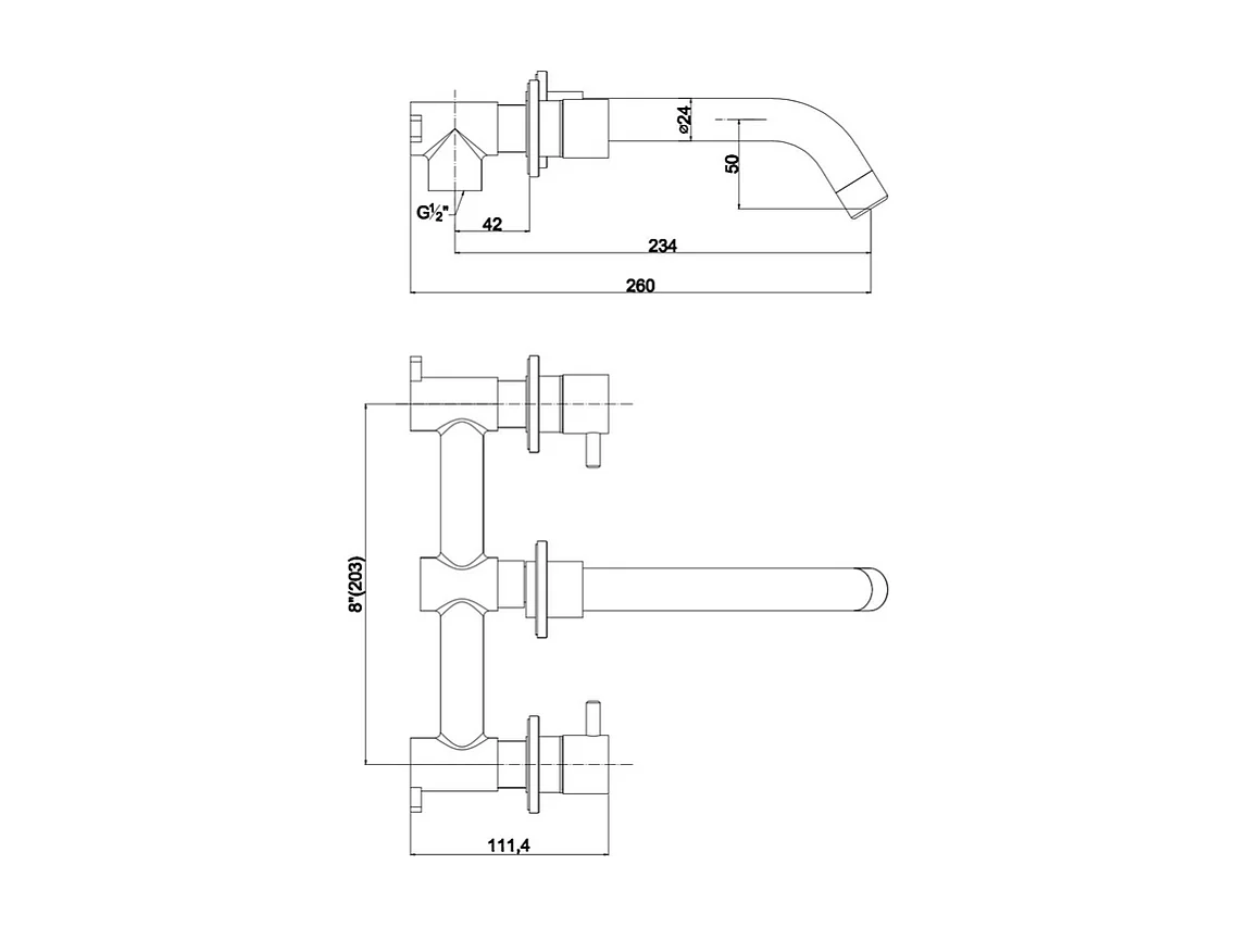 Mitigeur de lavabo mural en laiton chromé « Ismara »