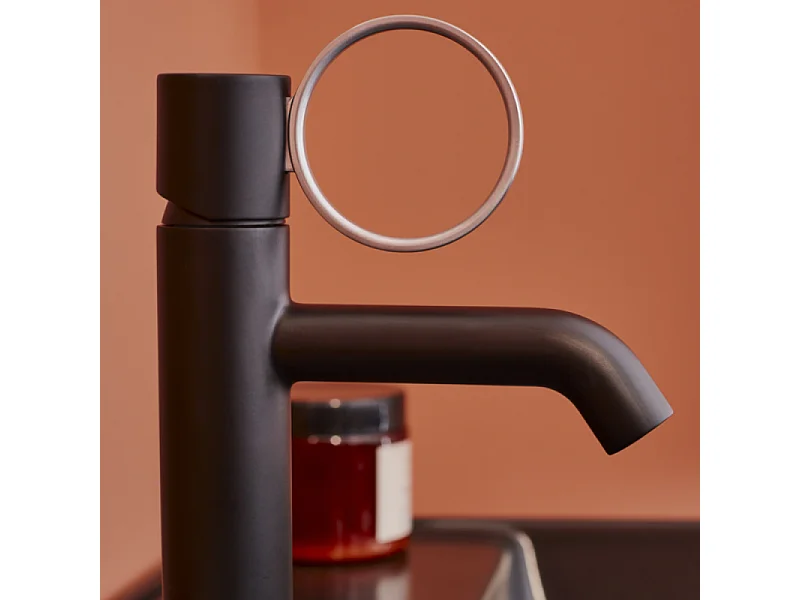 Mitigeur lavabo bas JACOB DELAFON Vivienne noir mat avec bague chromée brossée