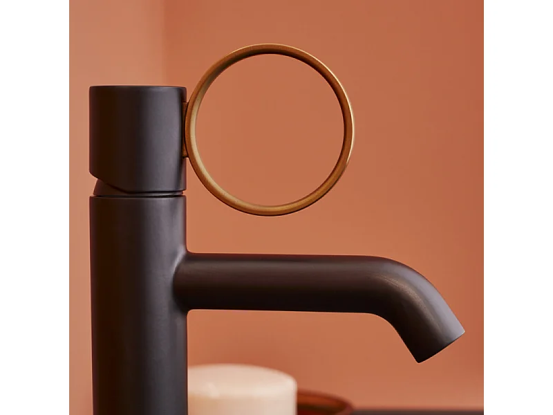Mitigeur lavabo bas JACOB DELAFON Vivienne noir mat avec bague laiton brossée