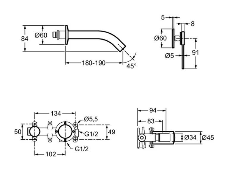 Mitigeur lavabo encastré JACOB DELAFON Grands Boulevards Laiton brossé + poignée + corps encastré
