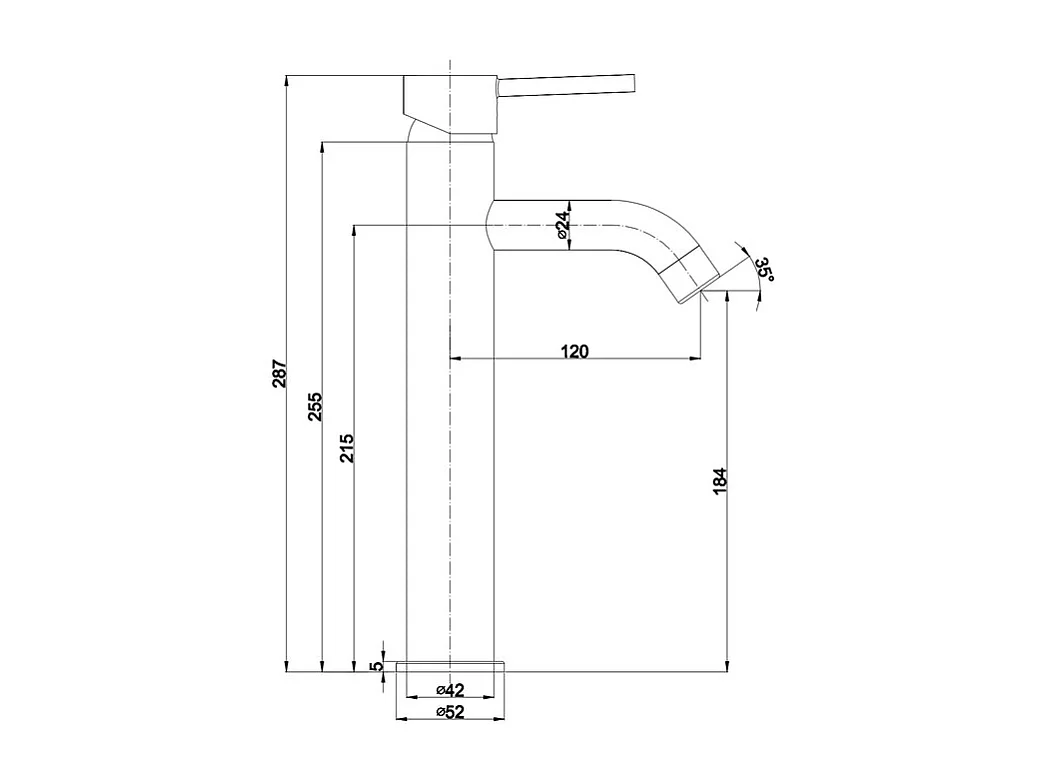 Mitigeur monotrou haut pour lavabo "Velthara" en laiton chromé pour plan de travail