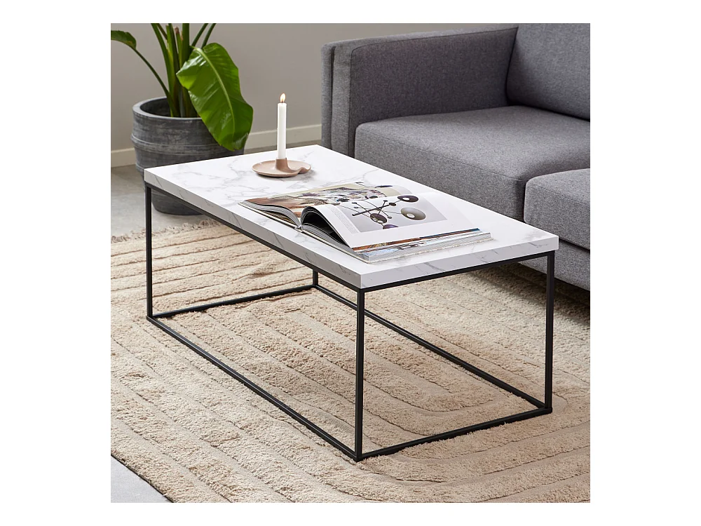 Mixo - Table basse en effet marbre et métal 110x55cm - Blanc