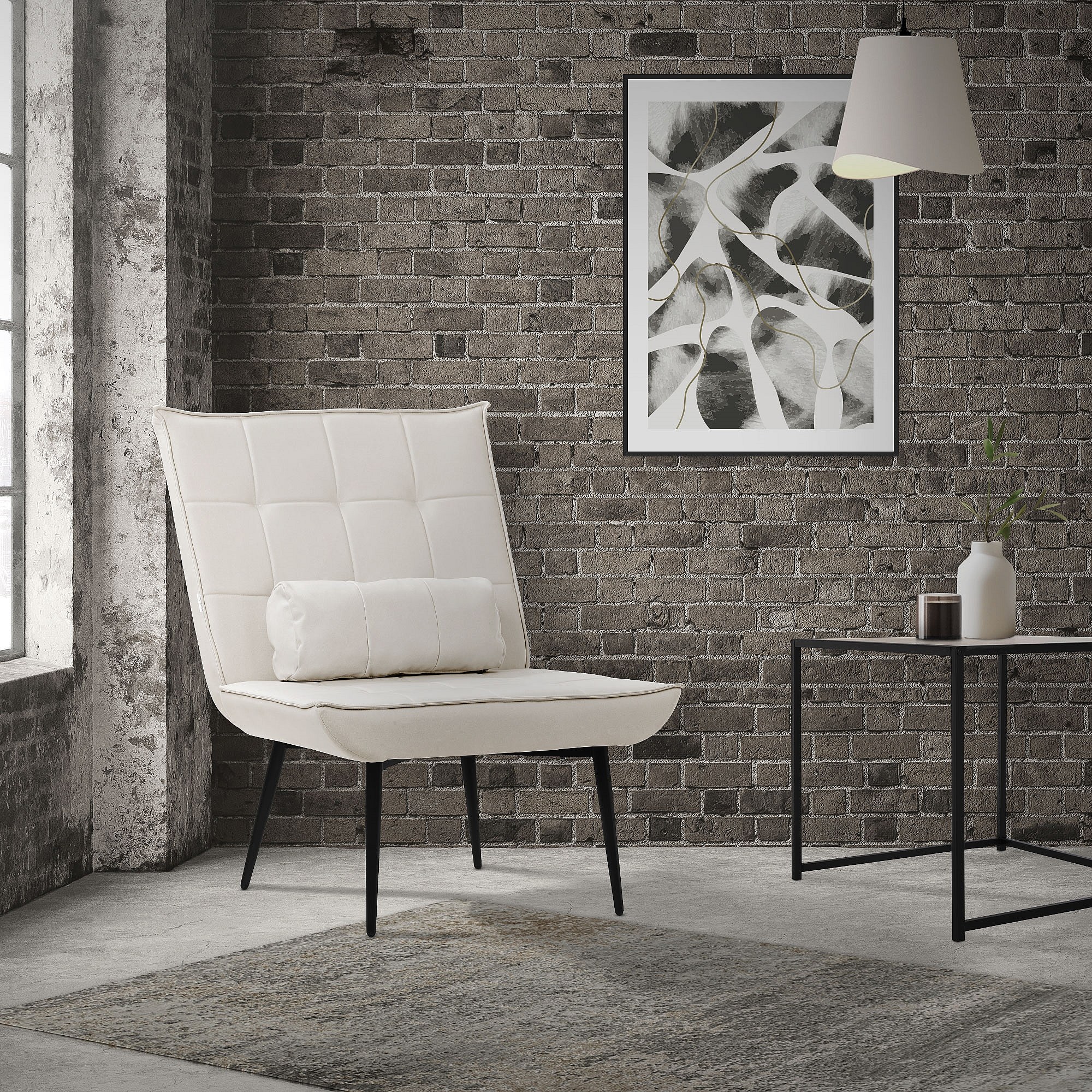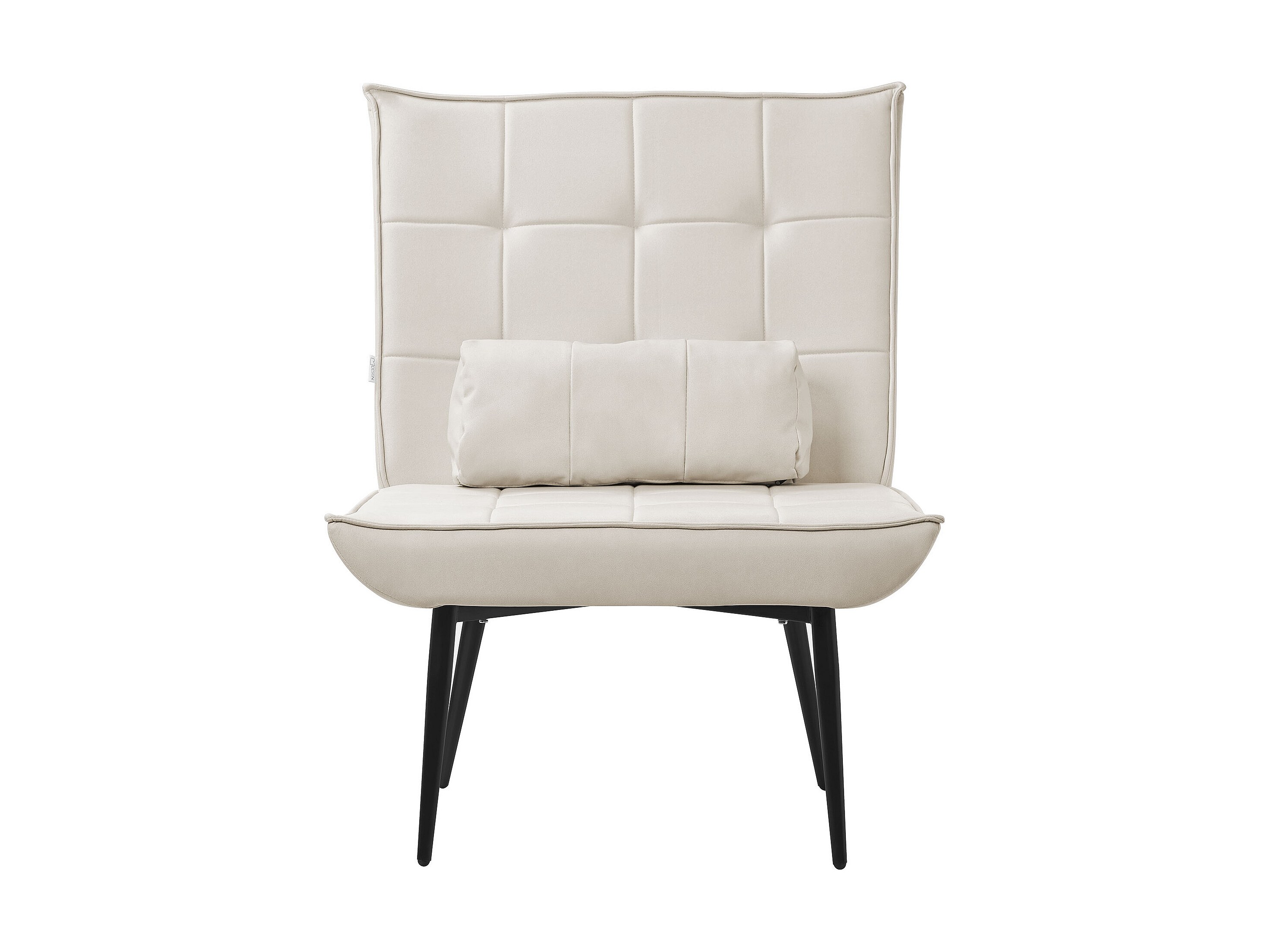 Fauteuil lounge avec coussin lombaire crème chaise rembourré confortable et moelleux pieds métalliques noirs canapé individuel de relax ergonomique