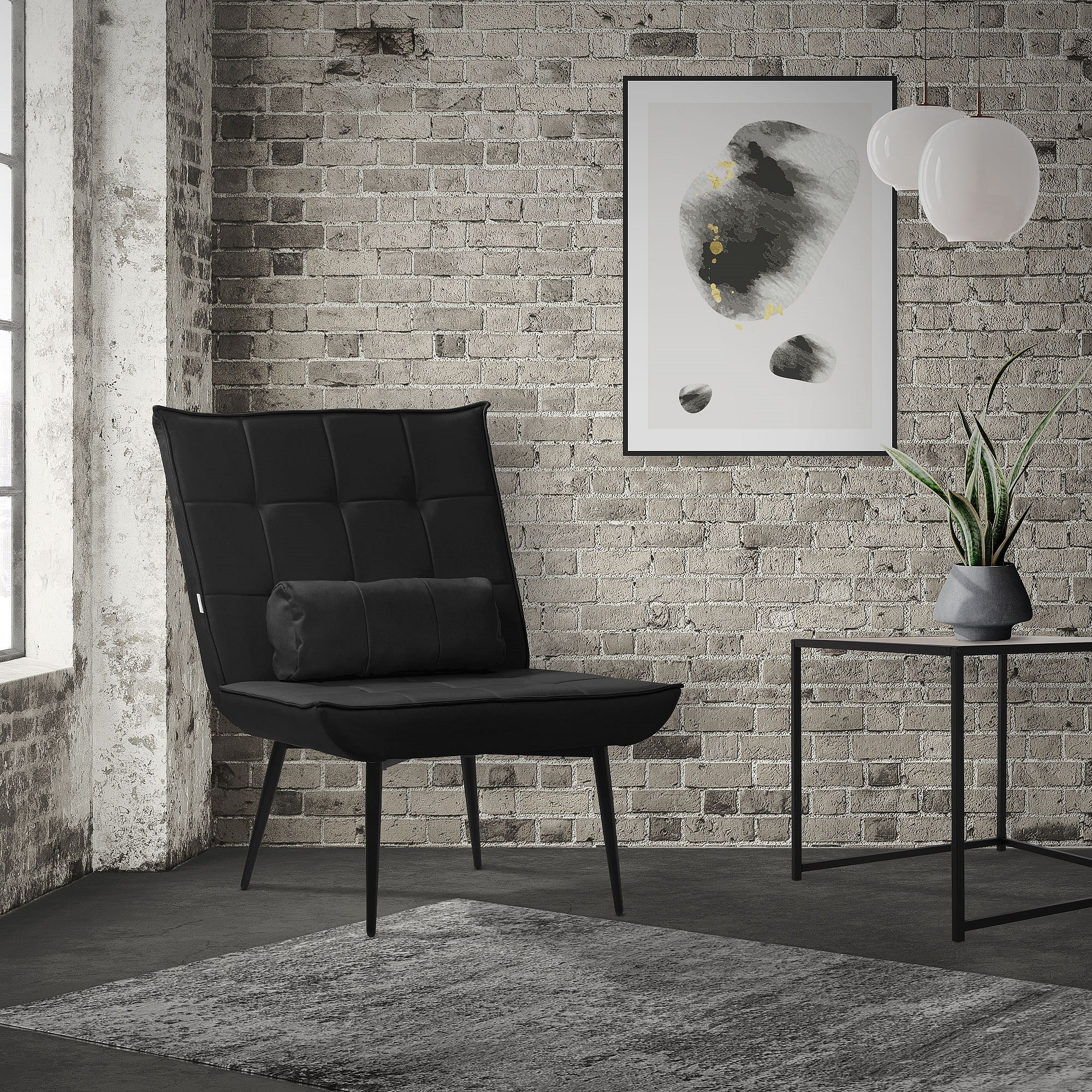 Fauteuil lounge avec coussin lombaire noir chaise rembourré confortable et moelleux pieds métalliques noirs canapé individuel de relax ergonomique