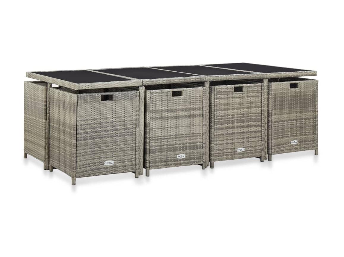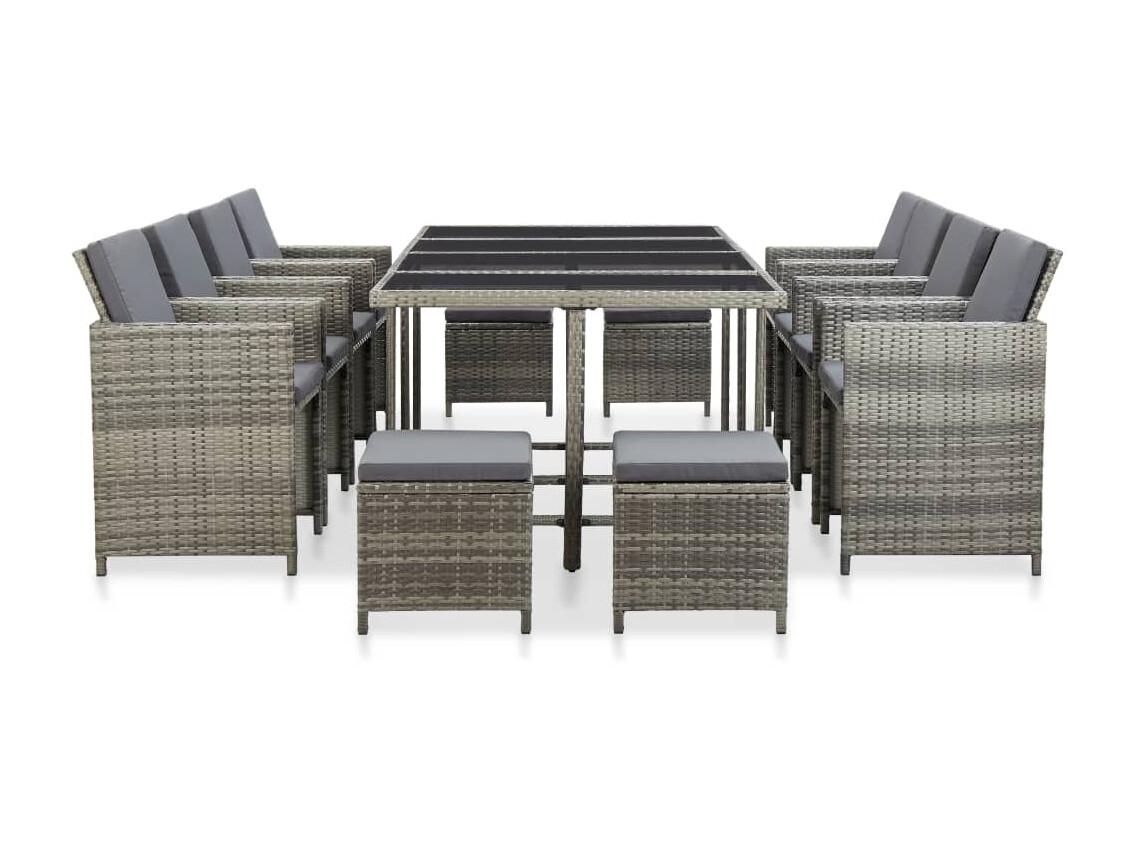 Mobilier à dîner de jardin 13pcs et coussin Résine tressée Gris