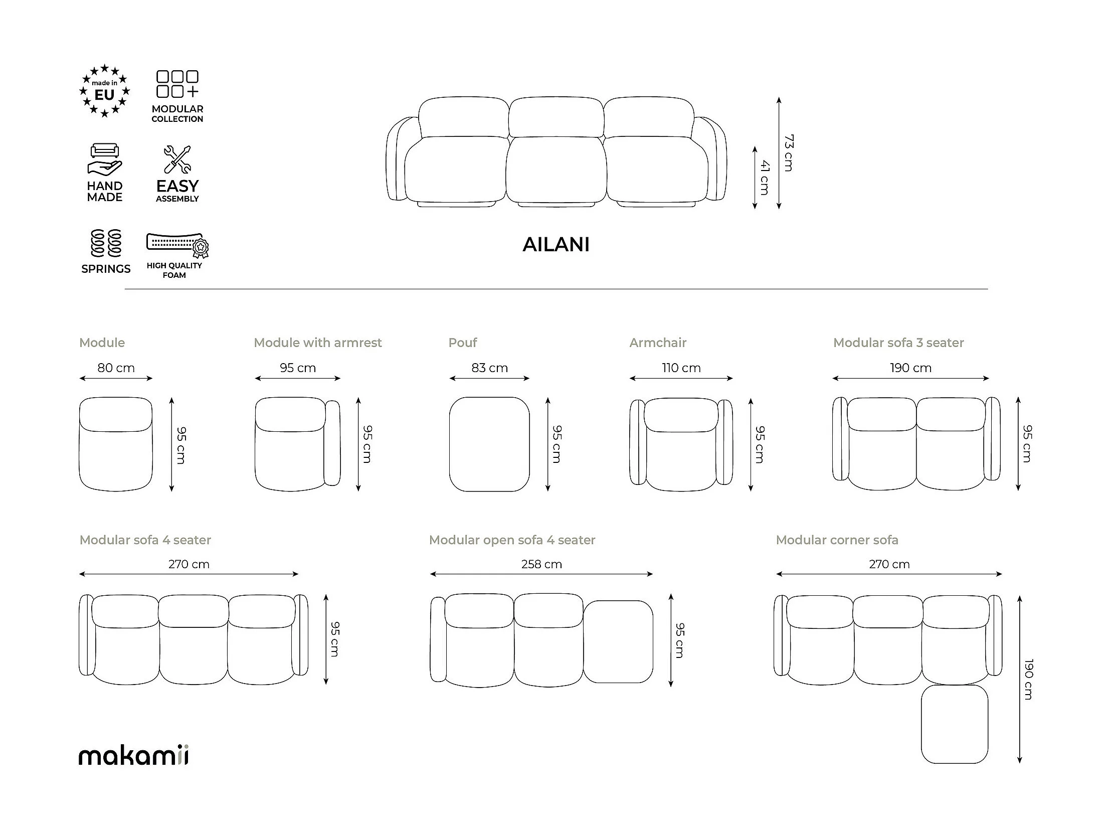 Module avec accoudoirs droit en tissu bouclette - jeans - AILANI