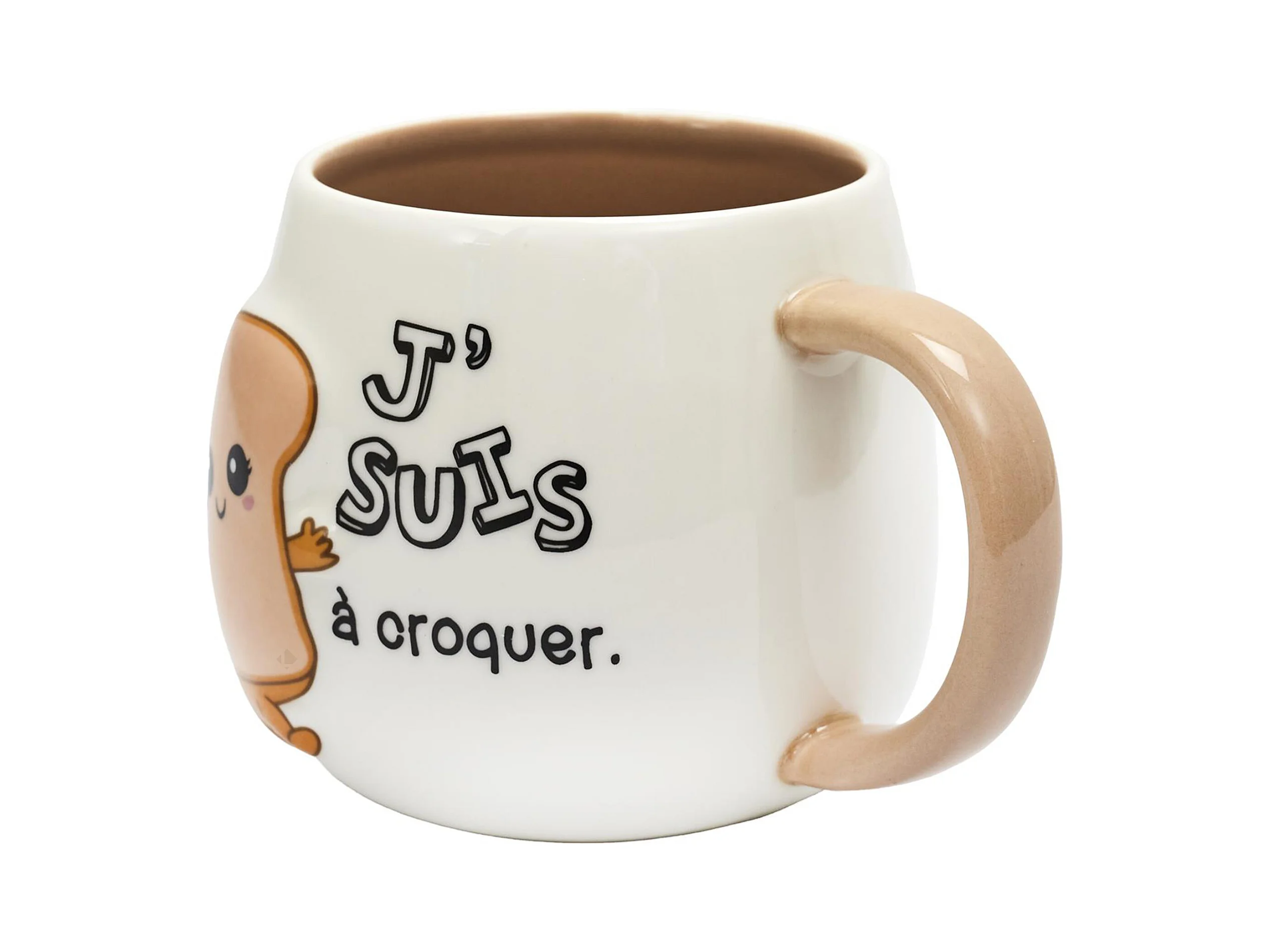 Mug en céramique à relief BREAKFAST 40 cl modèle "J'suis à croquer" marron
