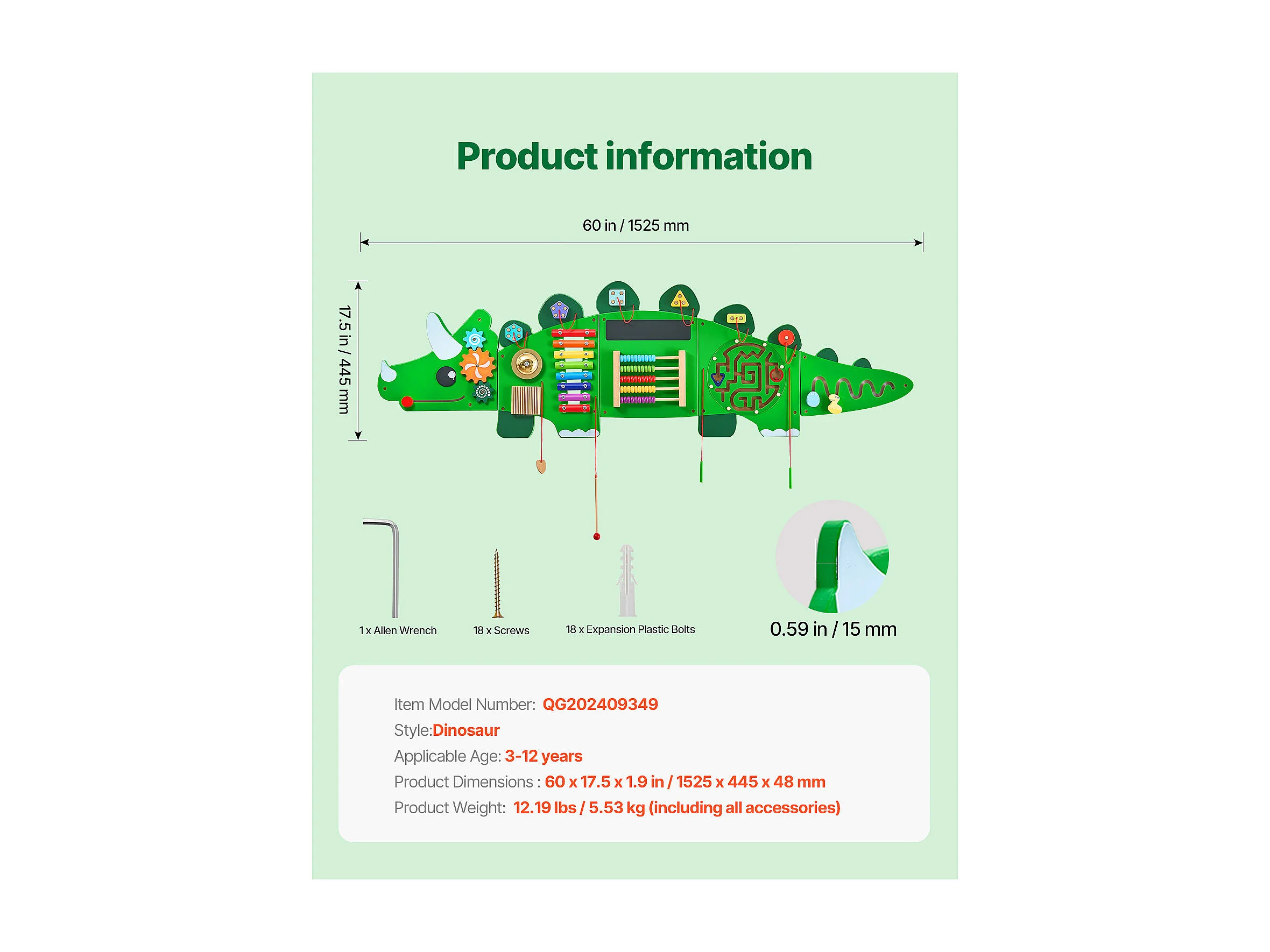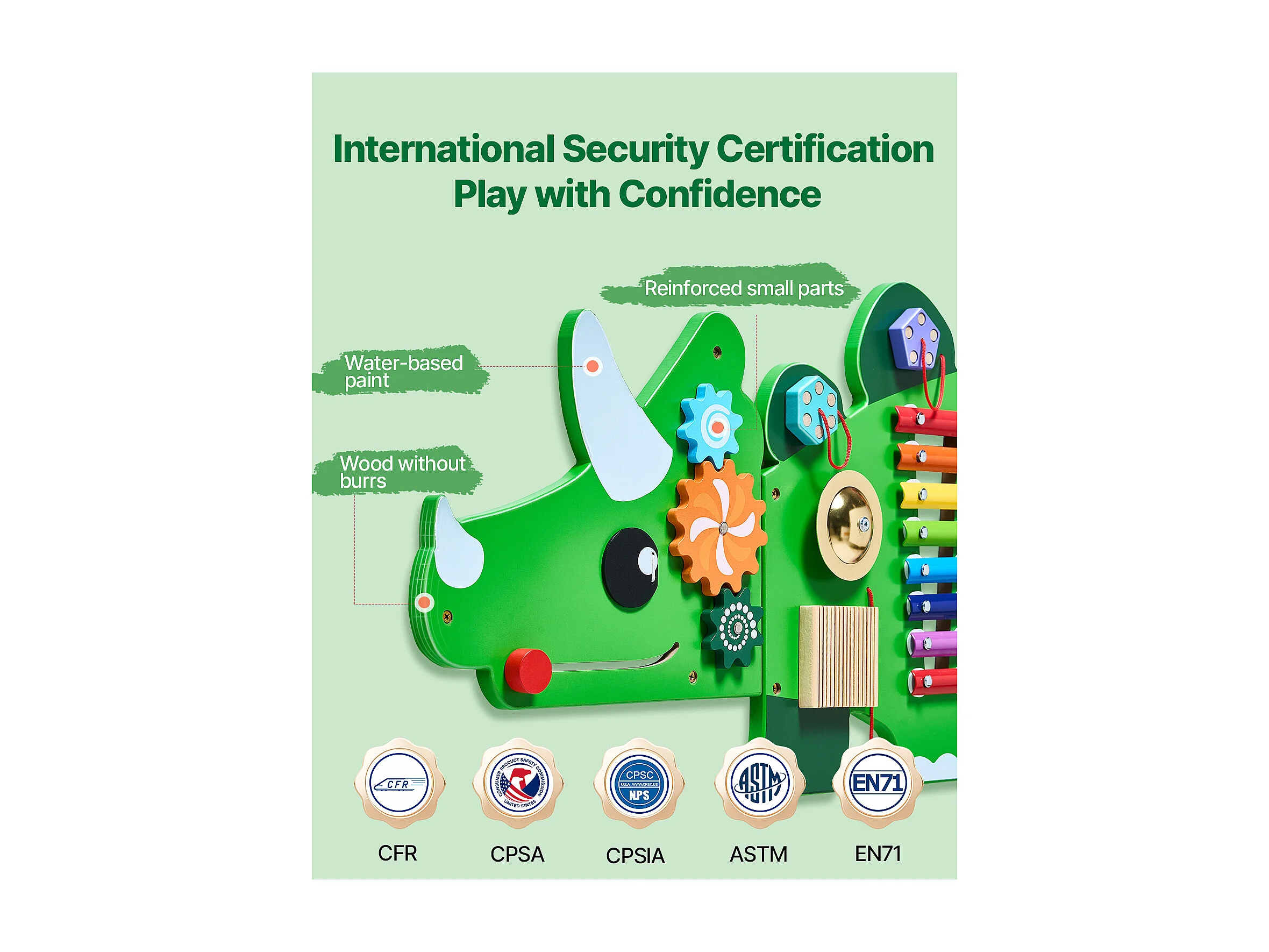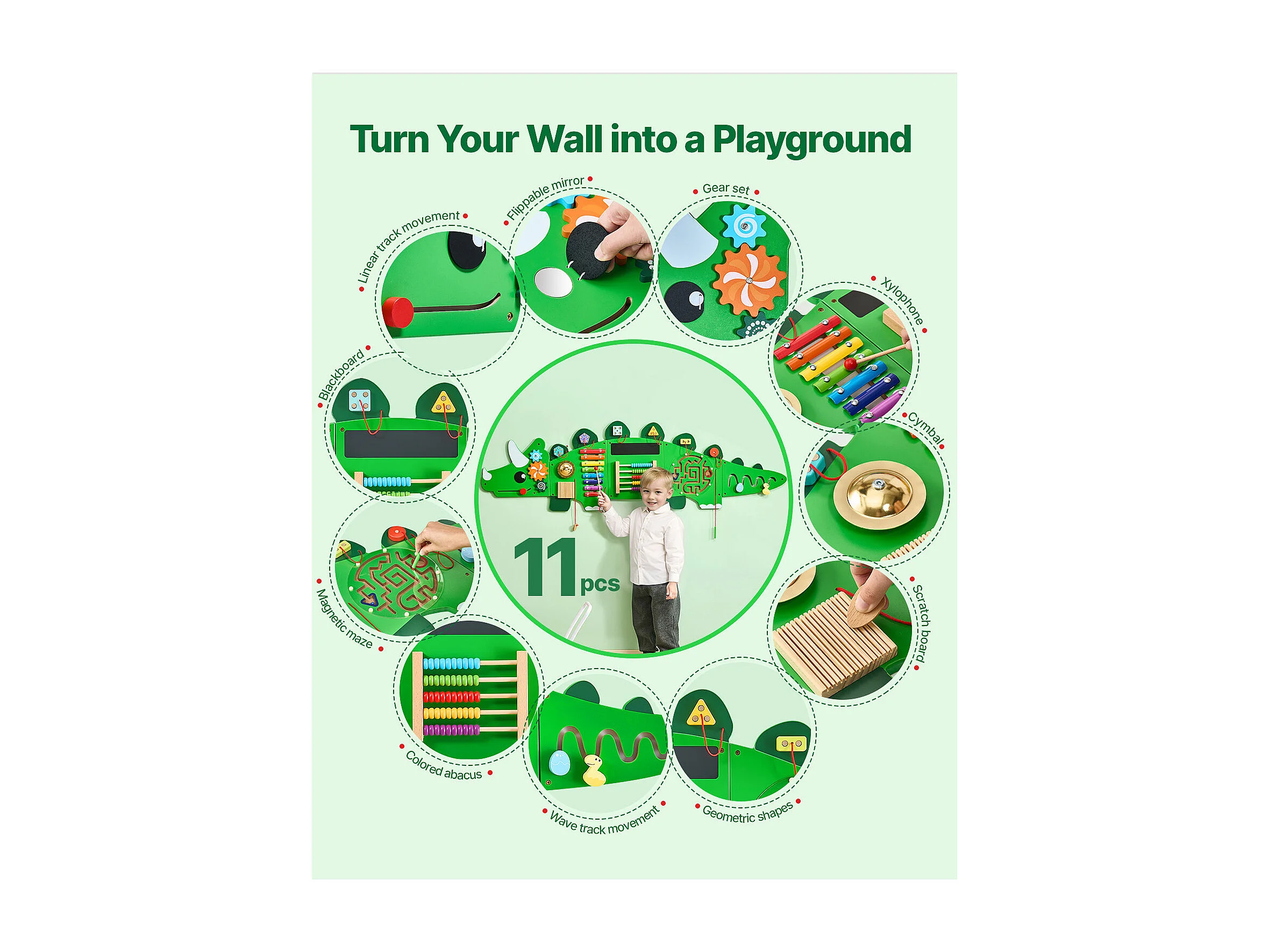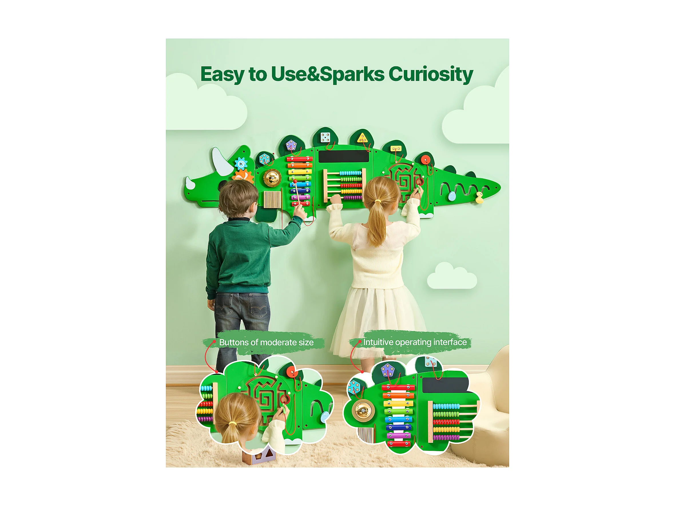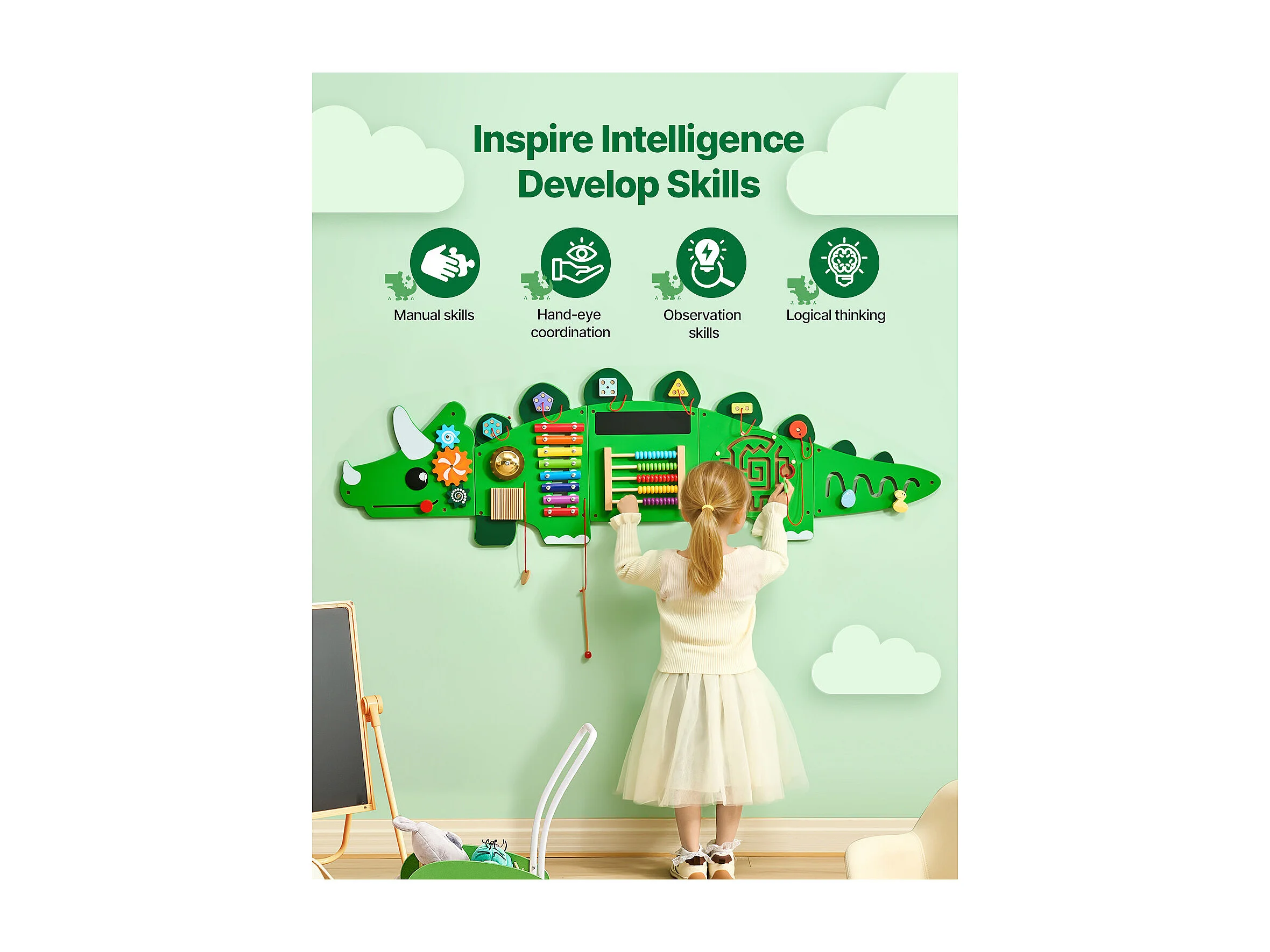 Mur d'Activités Sensorielles SucceBuy avec Motifs de Dinosaures et 11 Panneaux Passionnants