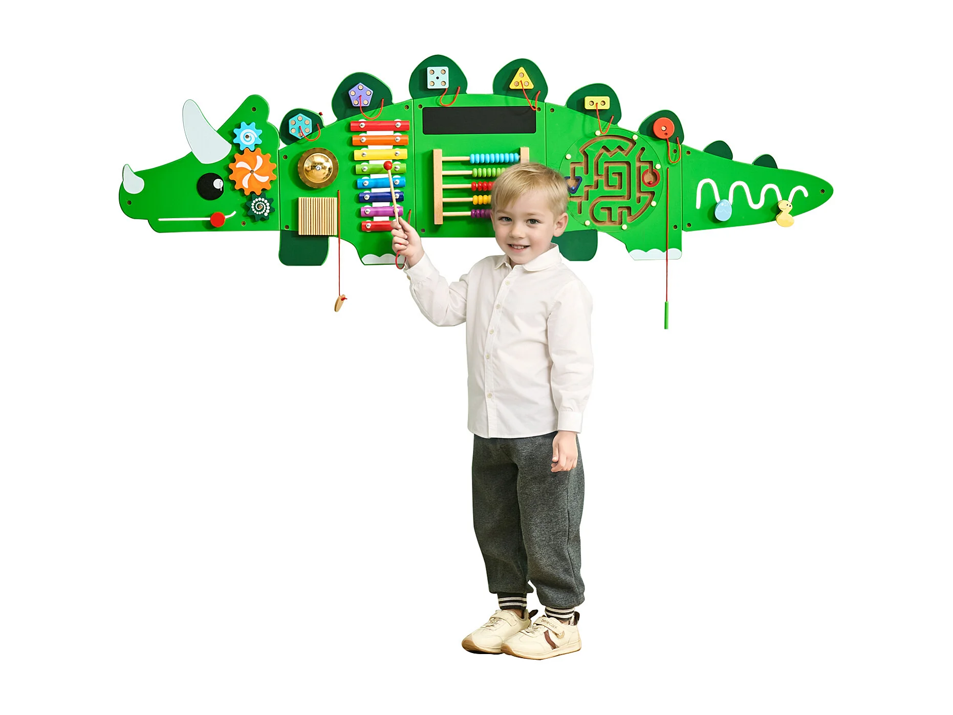 Jeu Mural de Motricité SucceBuy, Tableau d'Activités Crocodile avec 9 Jeux, Jouet Mural Sensoriel Montessori pour Enfants de 3 à 12 Ans