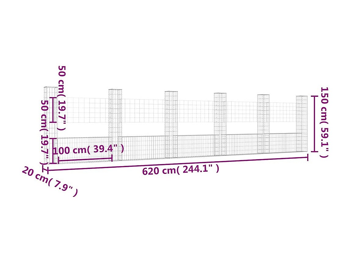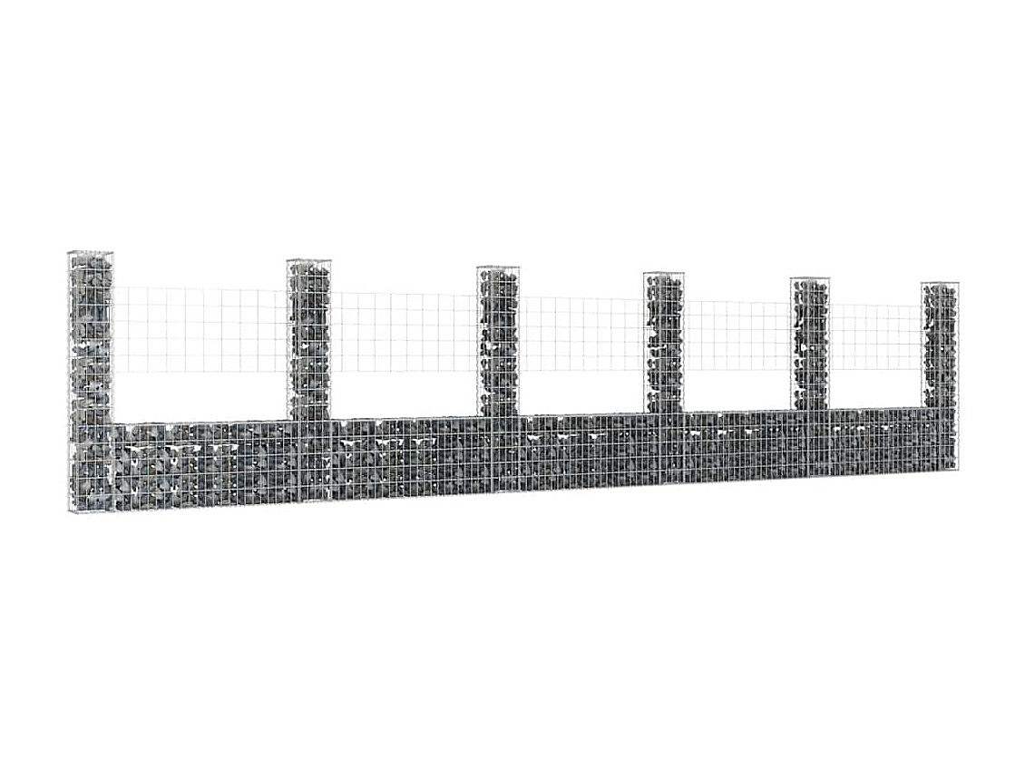 Mur en gabion-Panier de gabion en forme de U avec 6 poteaux Fer 620x20x150 cm